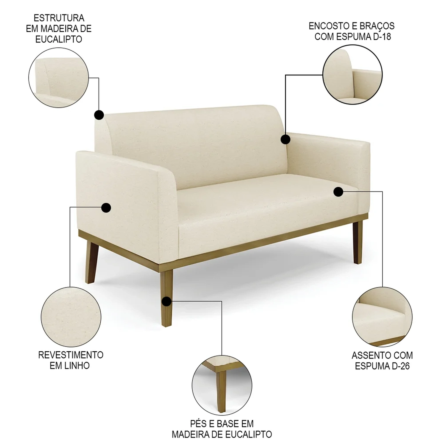 Material dos Pés: Madeira Eucalipto.