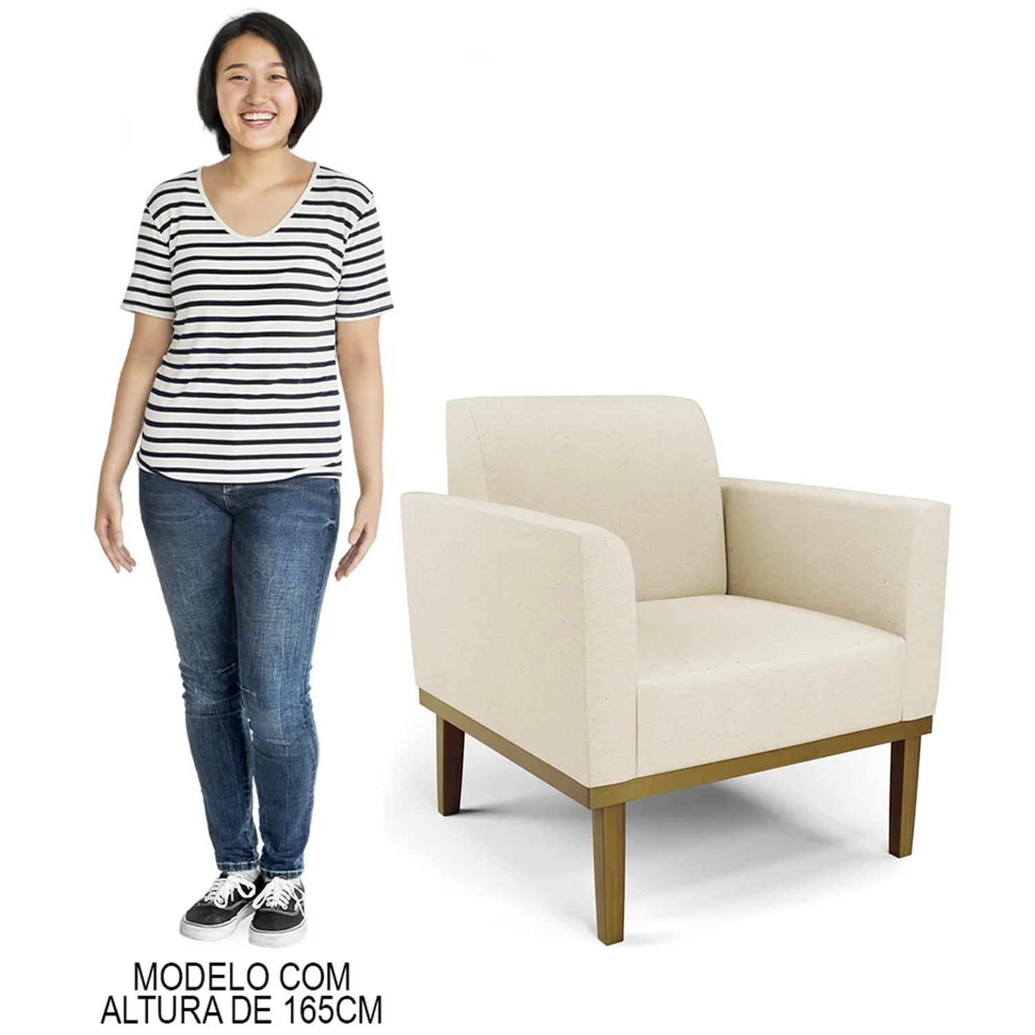 O Sofá Namoradeira e a Poltrona Decorativa são revestidos em Linho, que é fácil de limpar e valoriza o design das peças. Eles têm braços e encosto em espuma D-18 e assento em espuma D-26, que oferecem firmeza e aconchego para você relaxar. A base em madeira de eucalipto castanho é um detalhe charmoso, que dá um toque rústico e sofisticado ao conjunto. O kit tem uma estrutura resistente e suporta até 120 kg cada peça. A montagem é simples, pois as peças já vêm prontas, bastando fixar a base com os parafusos que acompanham o produto. A limpeza é prática, pois basta usar um pano limpo e levemente úmido, sem produtos abrasivos, para manter o seu kit sempre em bom estado. Hora de transformar seu ambiente com a Namoradeira 2 Lugares e a Poltrona para Sala deixando ainda mais confortável e estiloso.