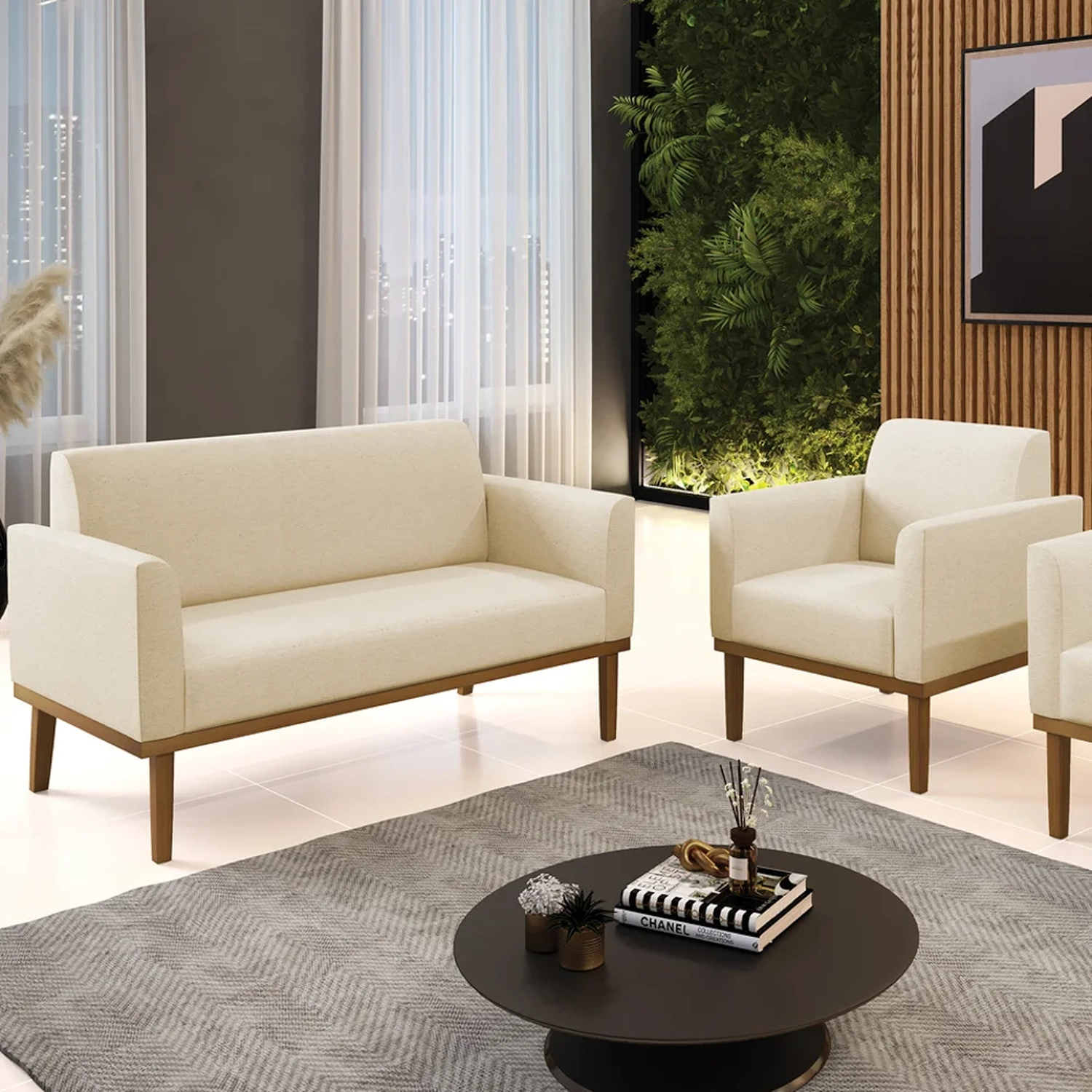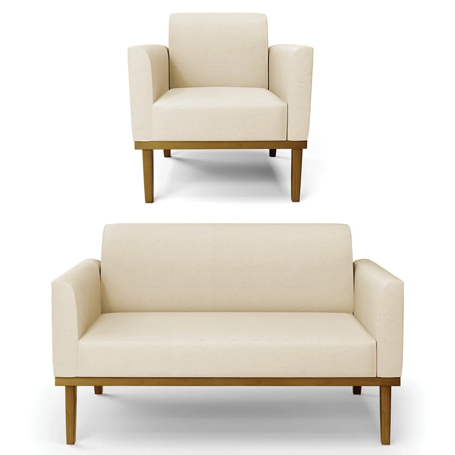 O Sofá Namoradeira e 1 Poltrona Base Madeira Castanho Maressa Linho Bege, da Ibiza é o conjunto ideal para quem busca beleza, conforto e versatilidade. Você pode usar na sua Sala De Estar, recepção ou qualquer outro ambiente que desejar.