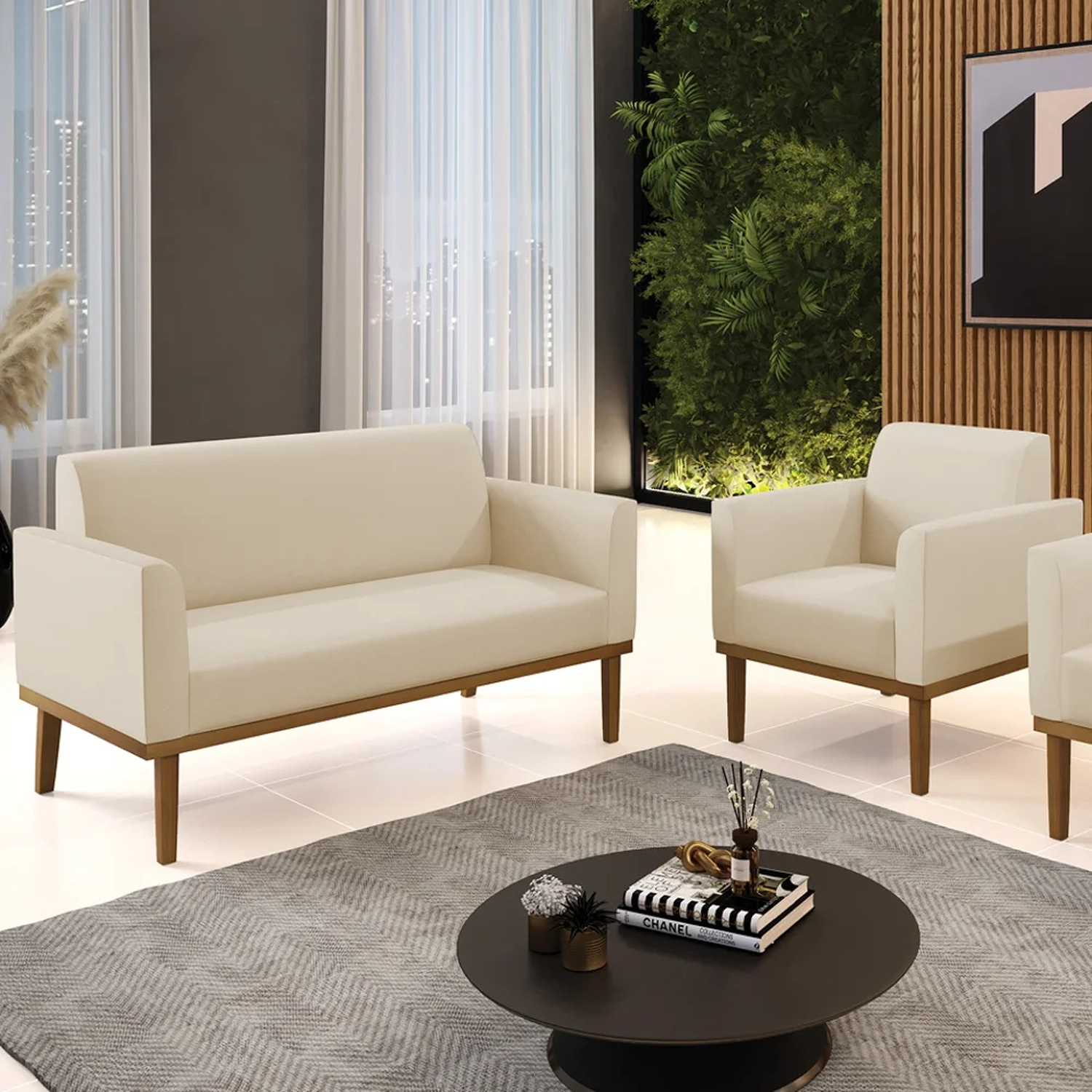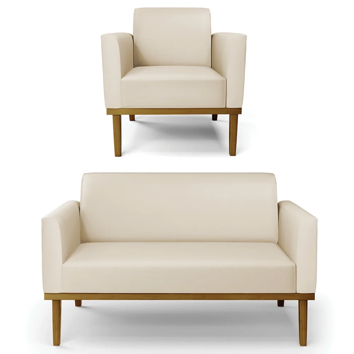 O Sofá Namoradeira e 1 Poltrona Base Madeira Castanho Maressa Sintético Bege, da Ibiza é o conjunto ideal para quem busca beleza, conforto e versatilidade. Você pode usar na sua Sala De Estar, recepção ou qualquer outro ambiente que desejar.