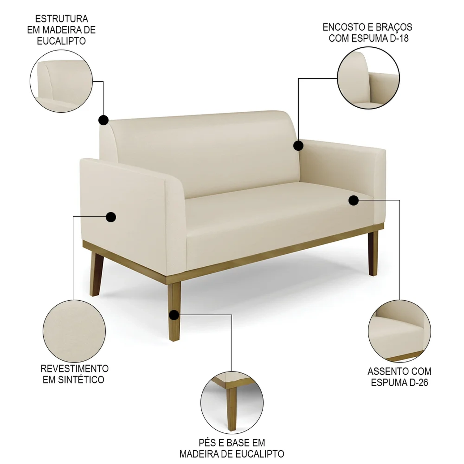 Material dos Pés: Madeira Eucalipto.