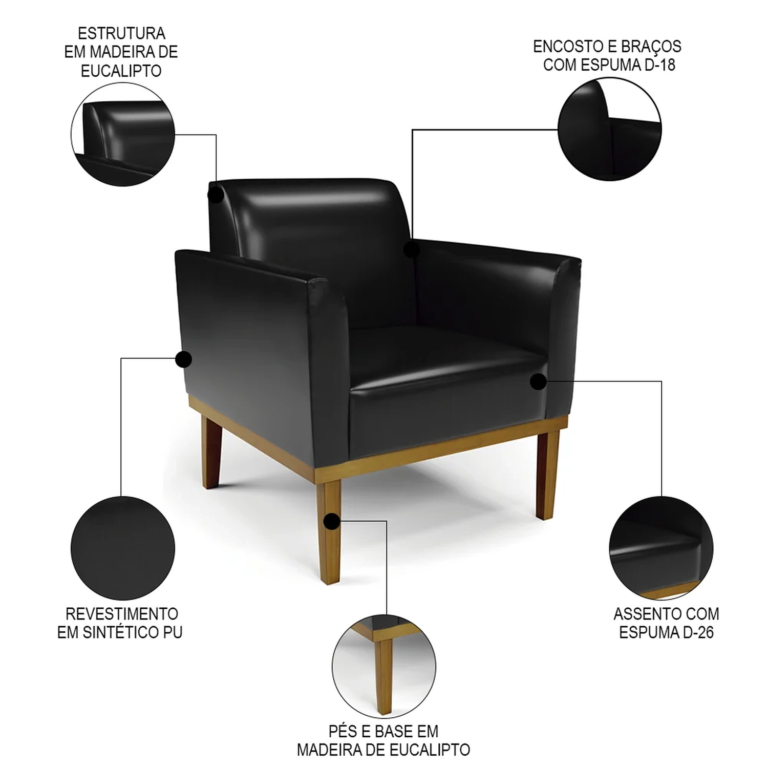 O Sofá Namoradeira e 1 Poltrona Base Madeira Castanho Maressa Sintético PU Preto, da Ibiza é o conjunto ideal para quem busca beleza, conforto e versatilidade. Você pode usar na sua Sala De Estar, recepção ou qualquer outro ambiente que desejar.