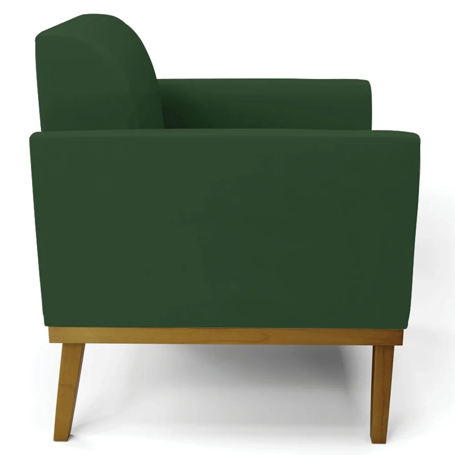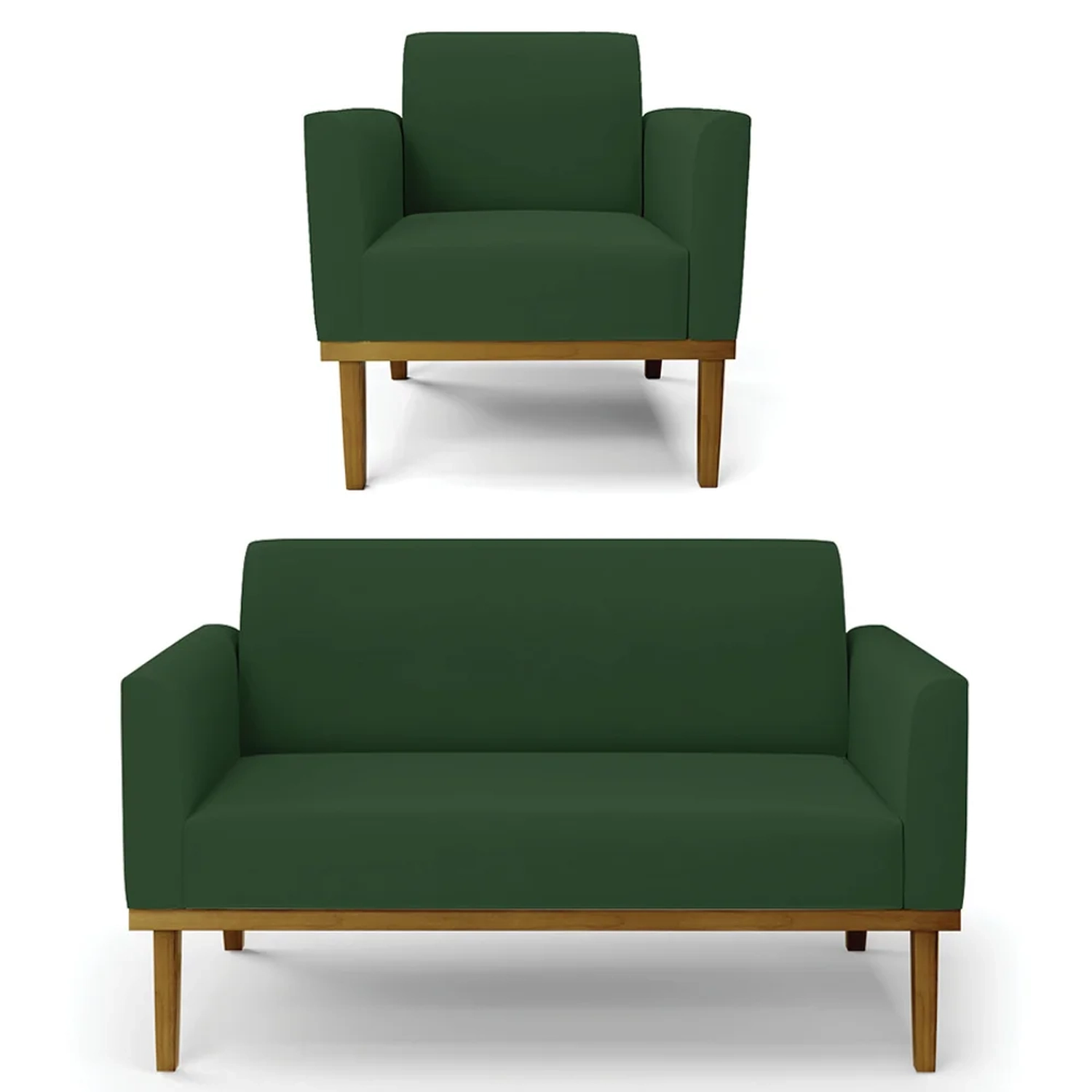 O Sofá Namoradeira e 1 Poltrona Base Madeira Castanho Maressa Veludo Verde, da Ibiza é o conjunto ideal para quem busca beleza, conforto e versatilidade. Você pode usar na sua Sala De Estar, recepção ou qualquer outro ambiente que desejar.
