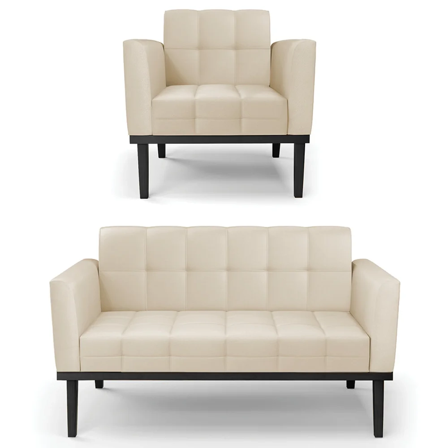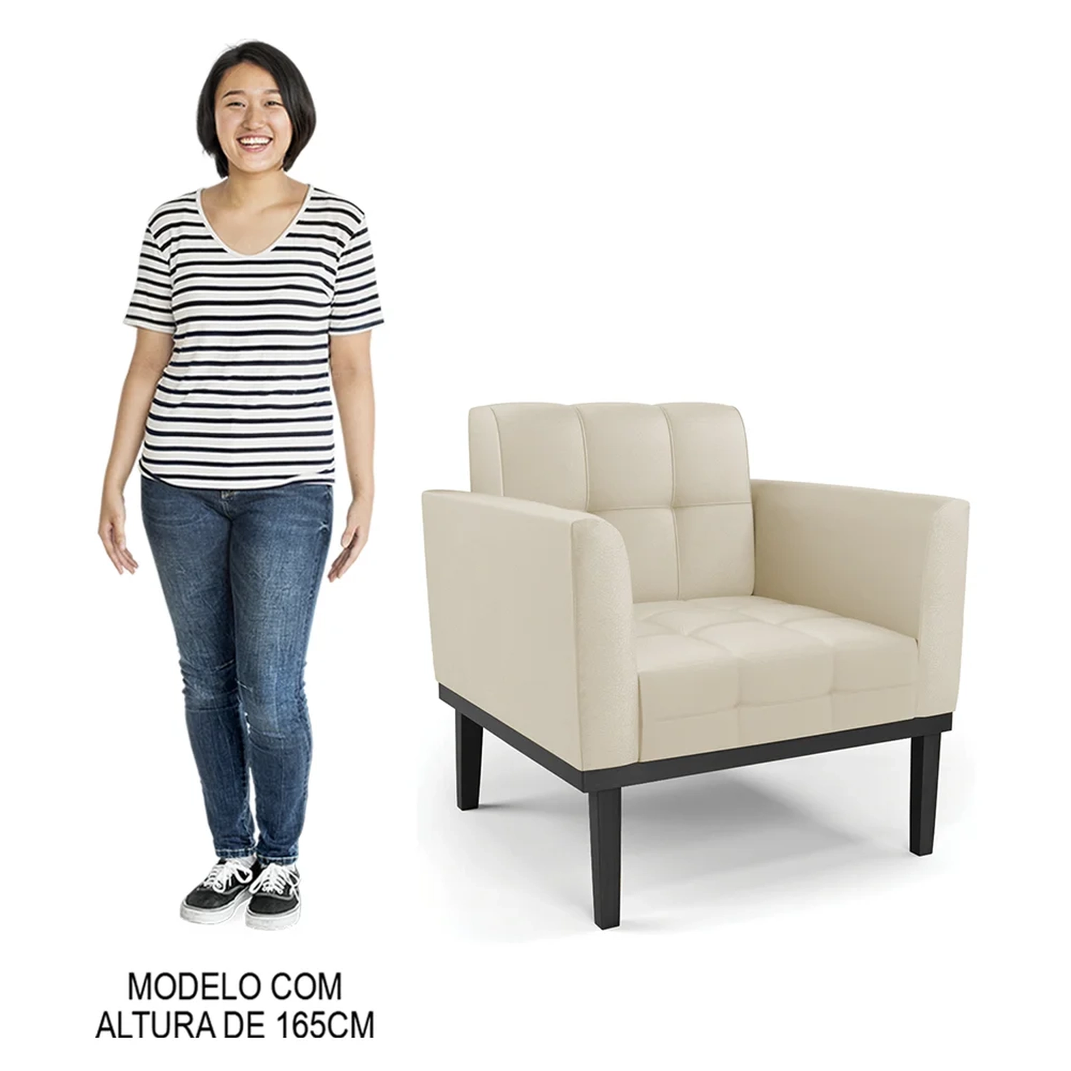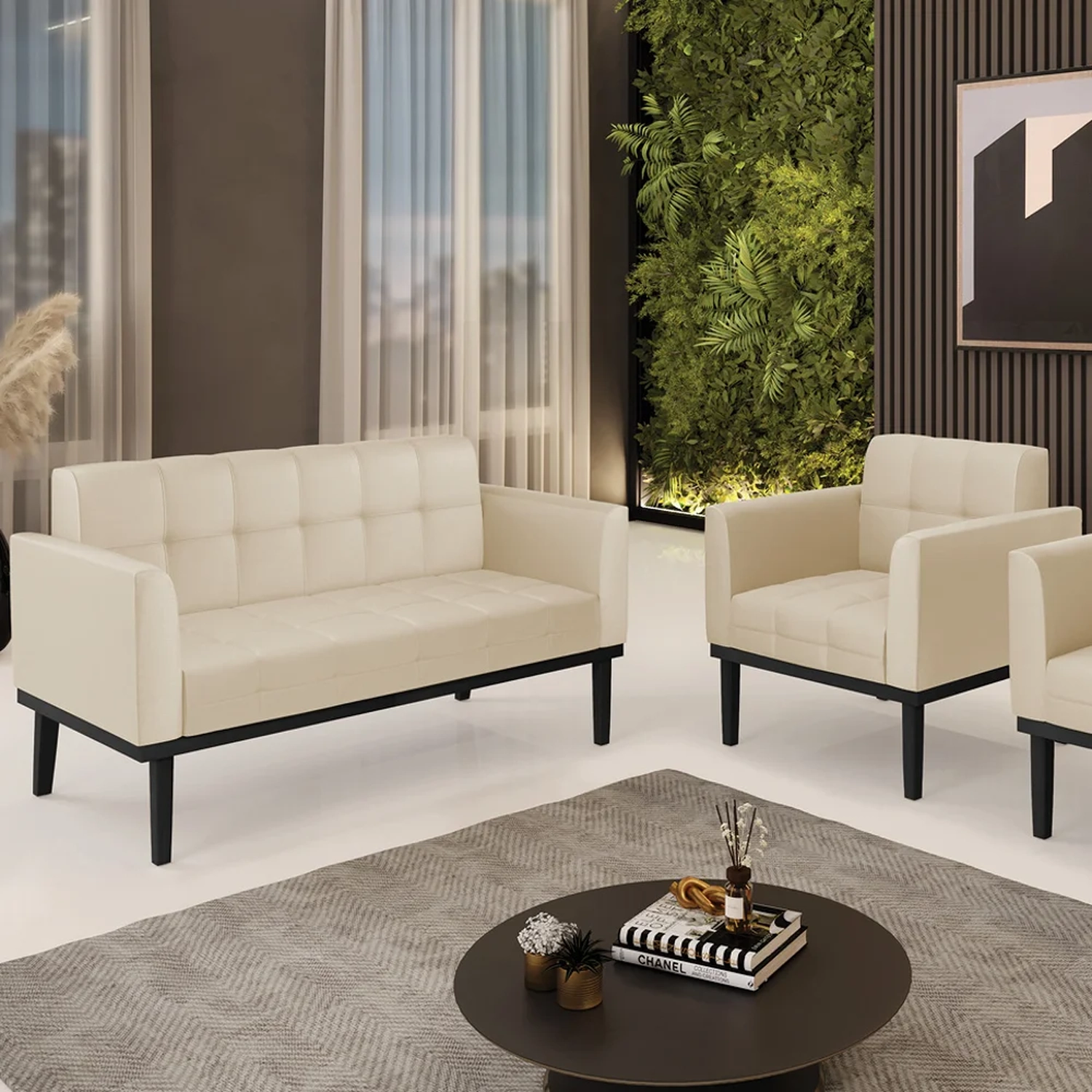 O Sofá Namoradeira e 1 Poltrona Base Madeira Preto Ana Sintético Bege, da Ibiza é o conjunto ideal para quem busca beleza, conforto e versatilidade. Você pode usar na sua Sala De Estar, recepção ou qualquer outro ambiente que desejar.