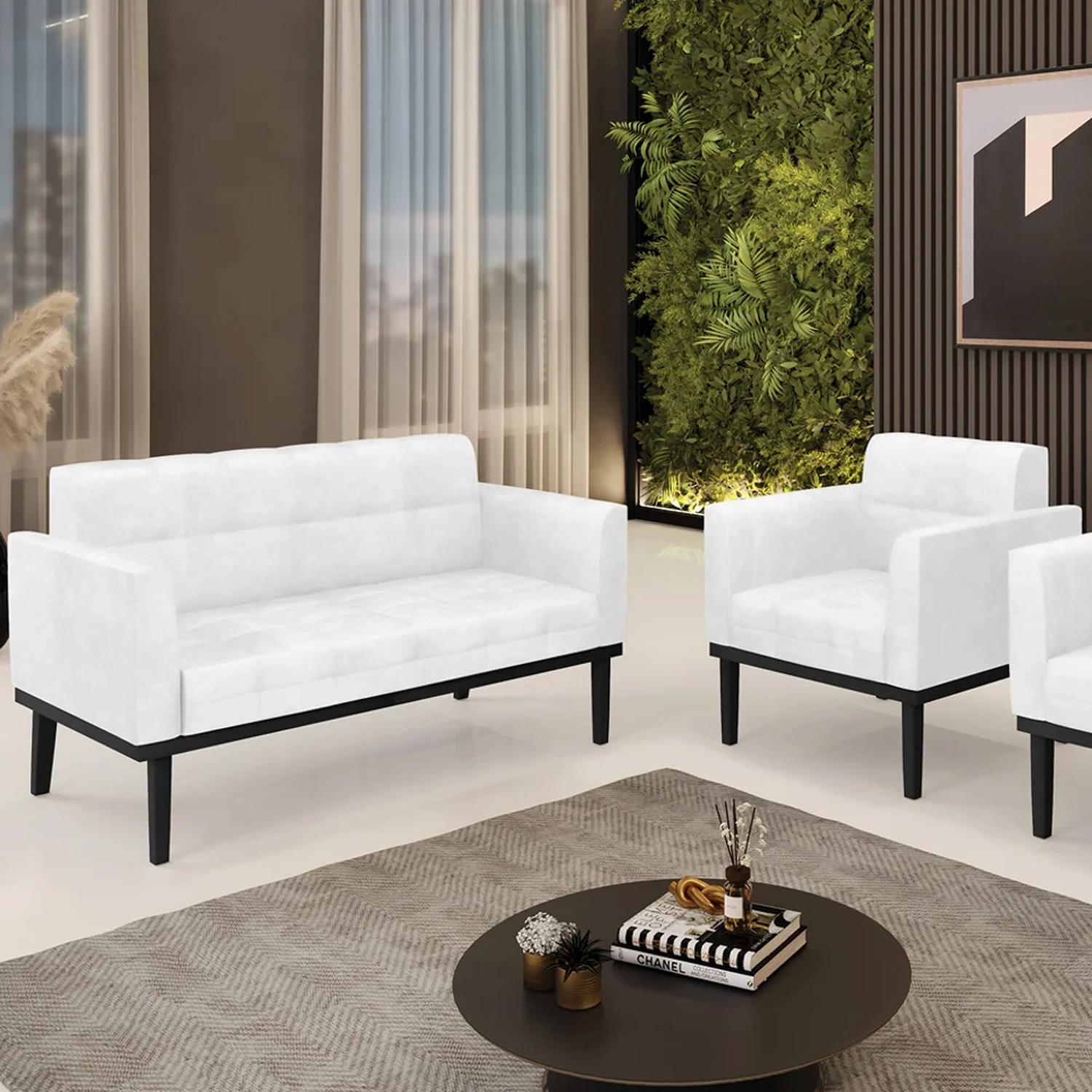 O Sofá Namoradeira e 1 Poltrona Base Madeira Preto Ana Sintético PU Branco, da Ibiza é o conjunto ideal para quem busca beleza, conforto e versatilidade. Você pode usar na sua Sala De Estar, recepção ou qualquer outro ambiente que desejar.
