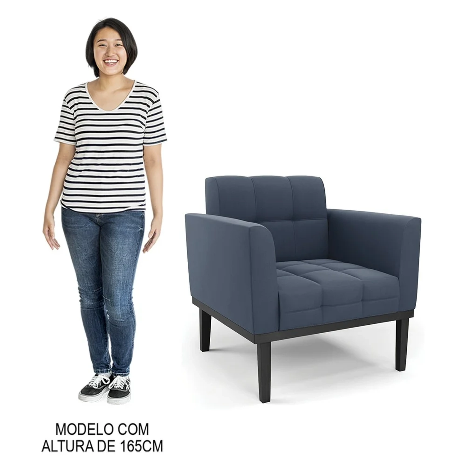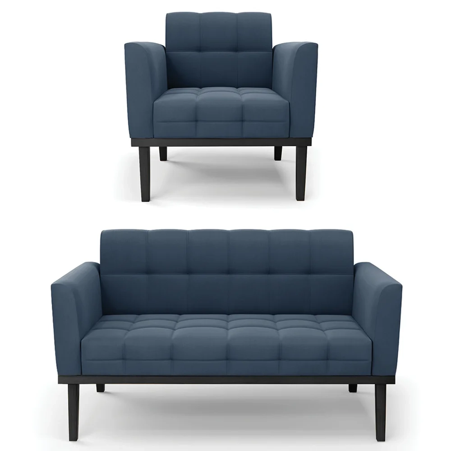 O Sofá Namoradeira e 1 Poltrona Base Madeira Preto Ana Suede Azul Marinho, da Ibiza é o conjunto ideal para quem busca beleza, conforto e versatilidade. Você pode usar na sua Sala De Estar, recepção ou qualquer outro ambiente que desejar.