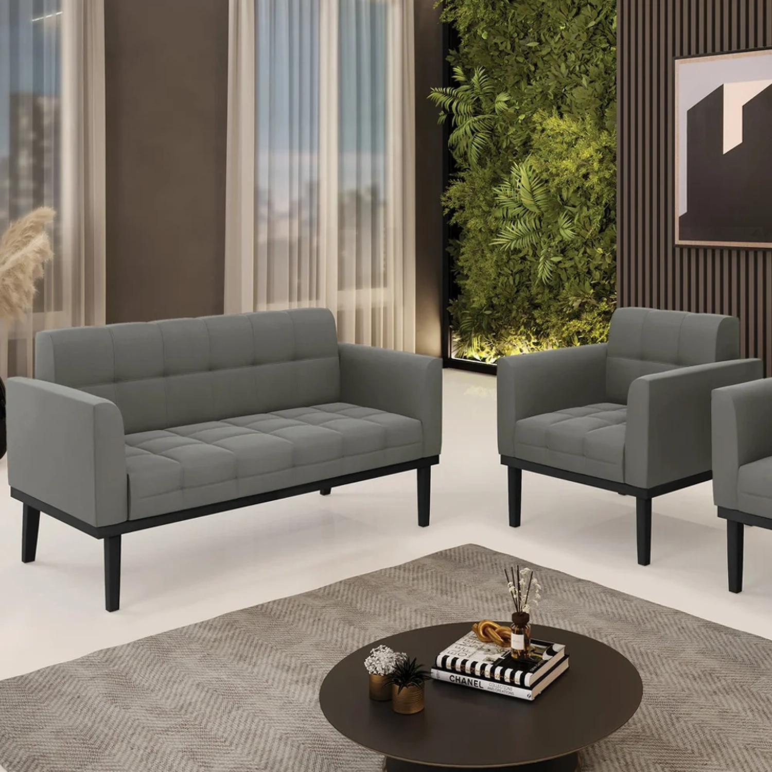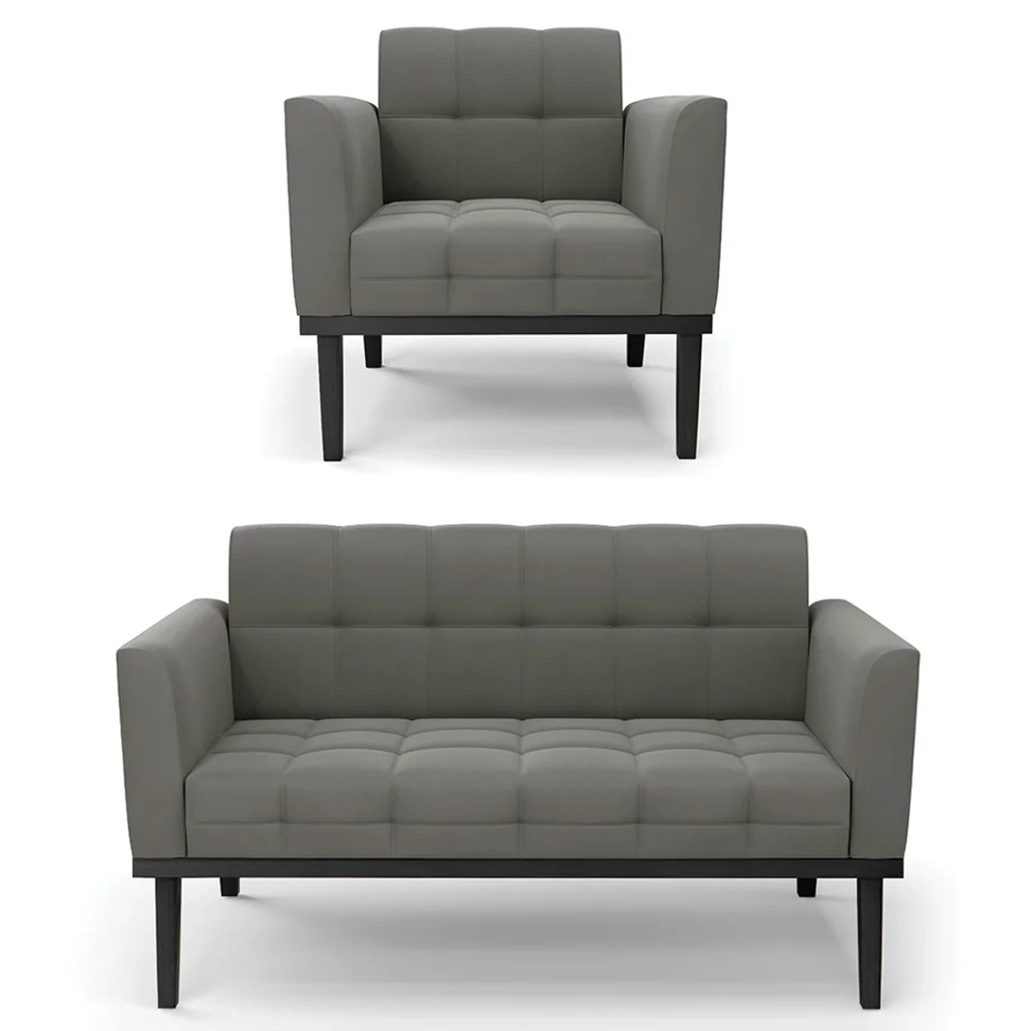 O Sofá Namoradeira e 1 Poltrona Base Madeira Preto Ana Suede Grafite, da Ibiza é o conjunto ideal para quem busca beleza, conforto e versatilidade. Você pode usar na sua Sala De Estar, recepção ou qualquer outro ambiente que desejar.