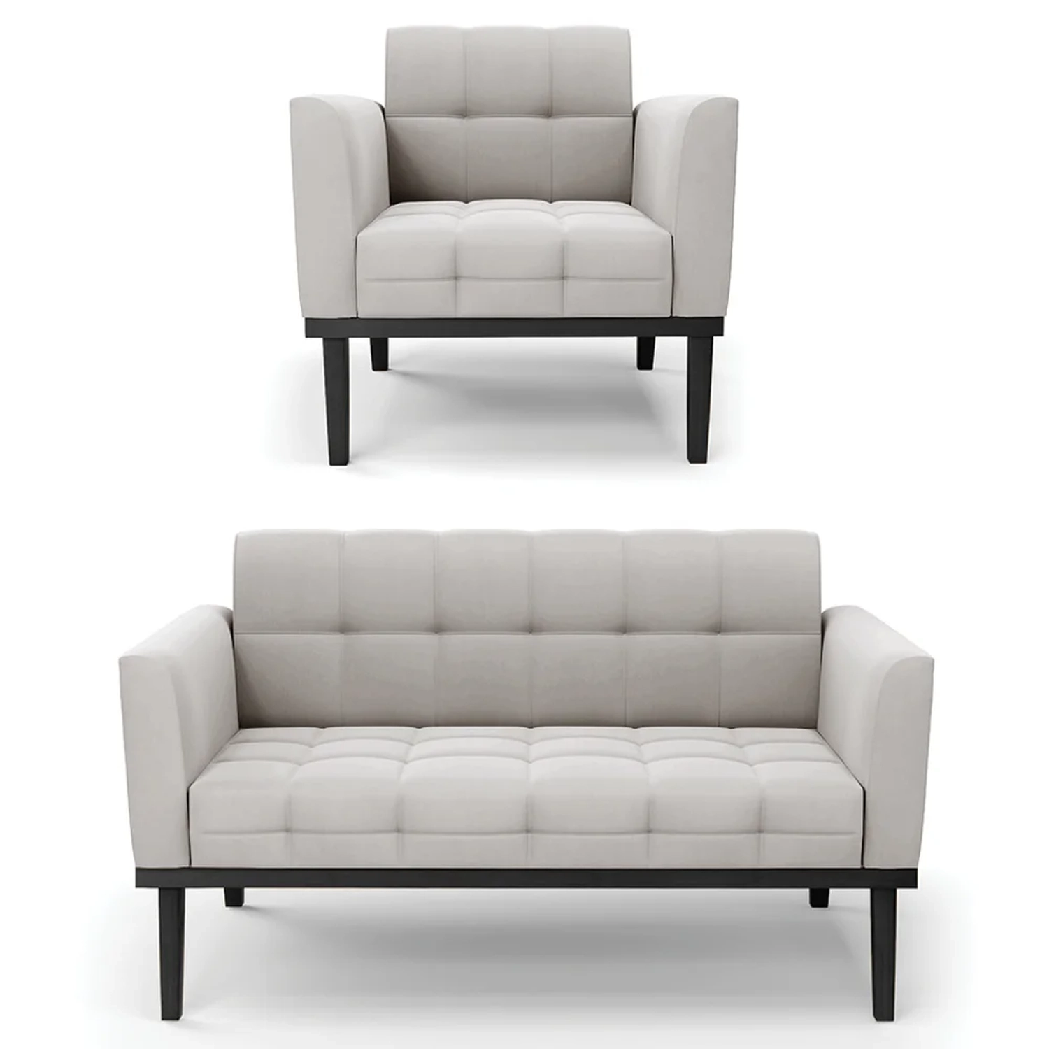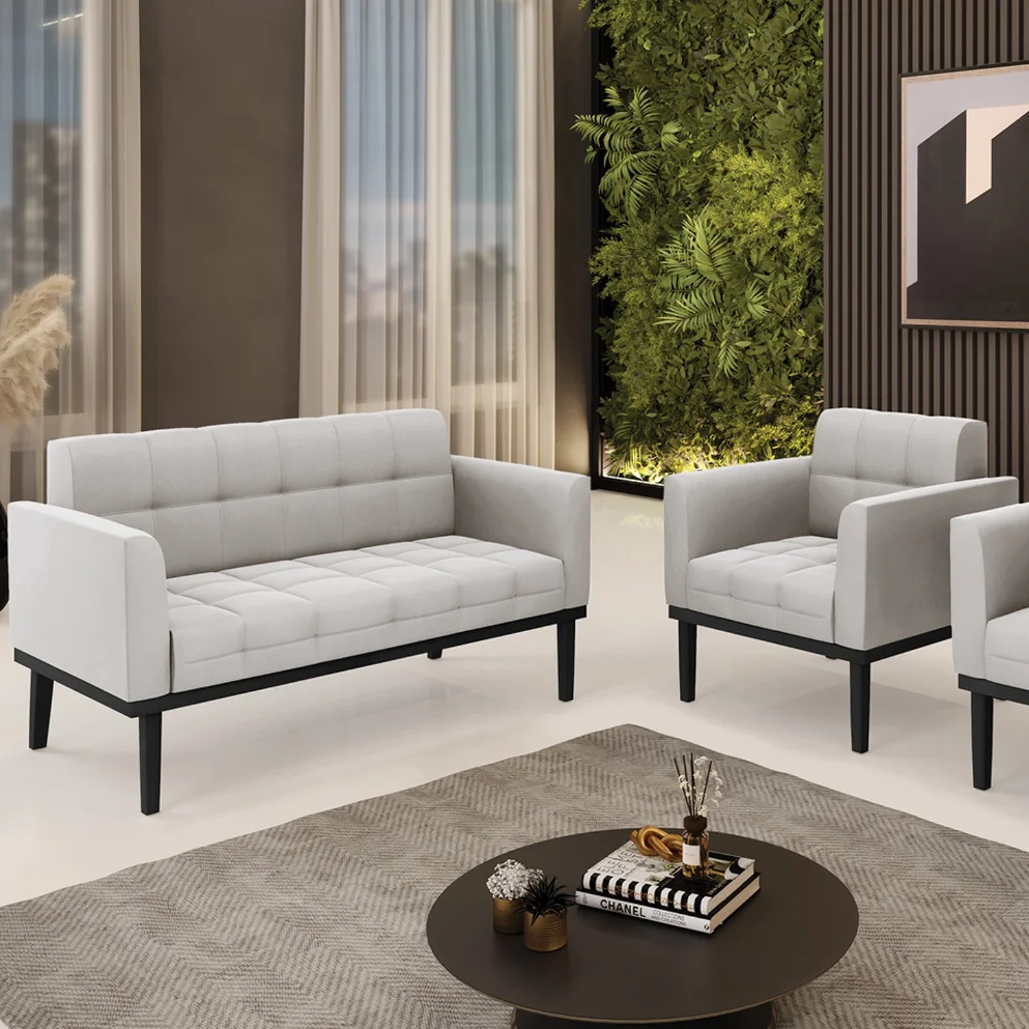 O Sofá Namoradeira e 1 Poltrona Base Madeira Preto Ana Veludo Cinza, da Ibiza é o conjunto ideal para quem busca beleza, conforto e versatilidade. Você pode usar na sua Sala De Estar, recepção ou qualquer outro ambiente que desejar.
