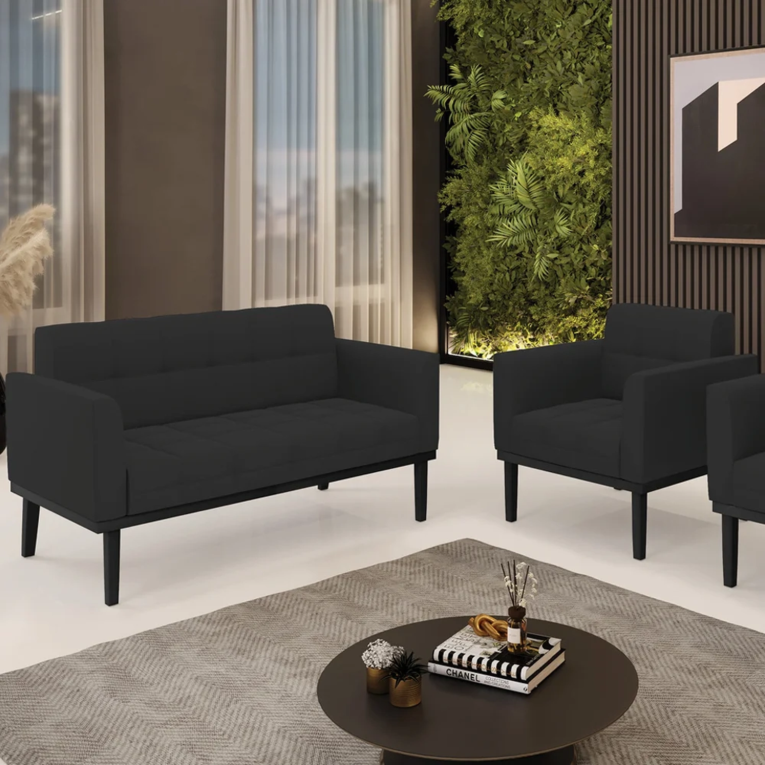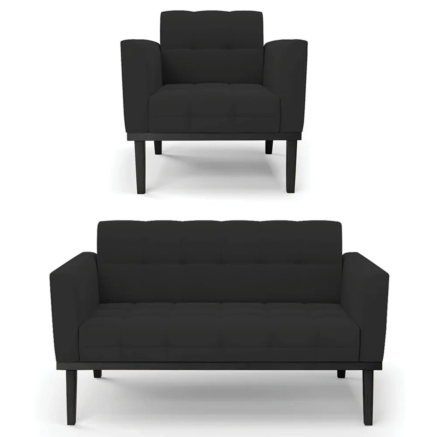 O Sofá Namoradeira e 1 Poltrona Base Madeira Preto Ana Veludo Preto, da Ibiza é o conjunto ideal para quem busca beleza, conforto e versatilidade. Você pode usar na sua Sala De Estar, recepção ou qualquer outro ambiente que desejar.