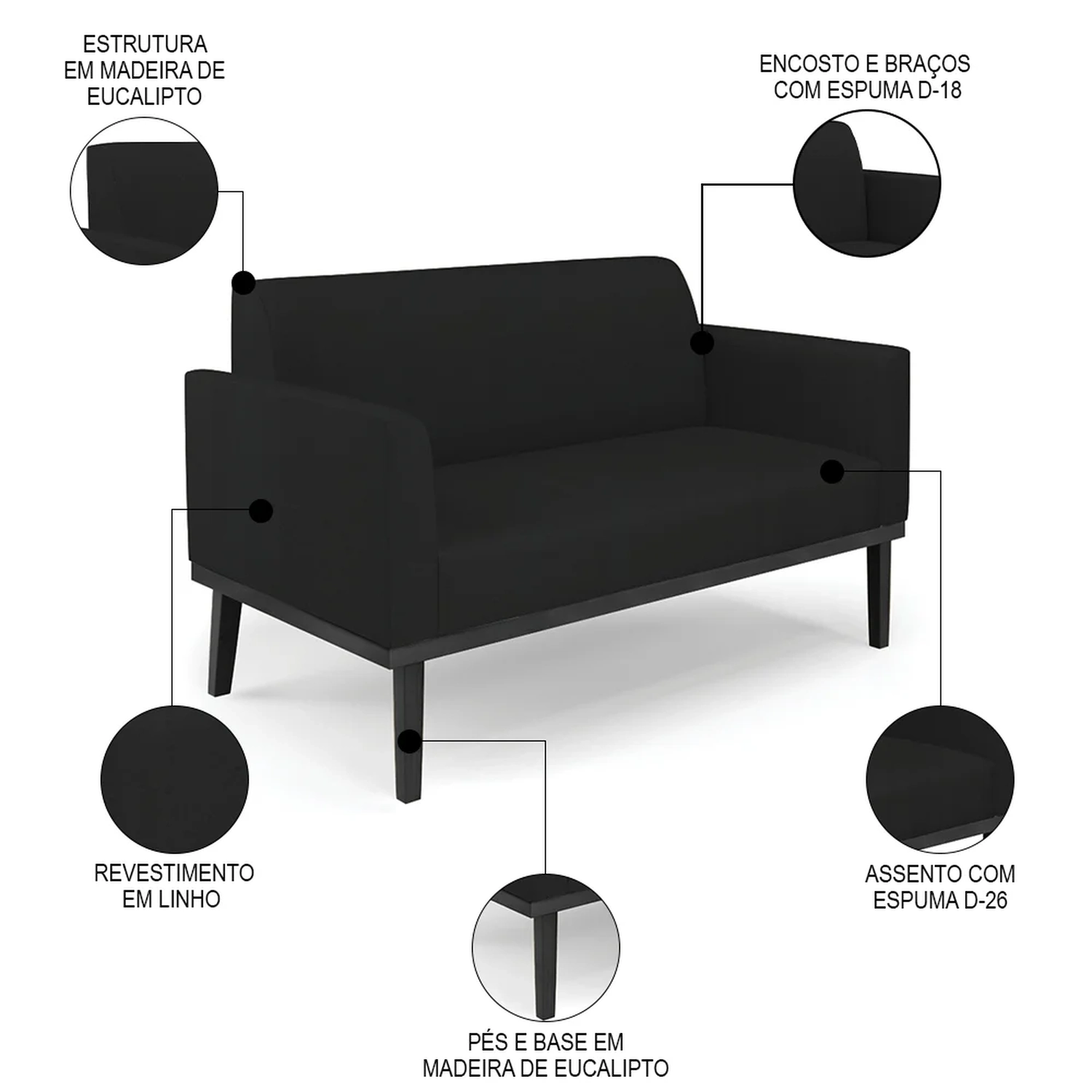 O Sofá Namoradeira e 1 Poltrona Base Madeira Preto Maressa Linho Preto, da Ibiza é o conjunto ideal para quem busca beleza, conforto e versatilidade. Você pode usar na sua Sala De Estar, recepção ou qualquer outro ambiente que desejar.