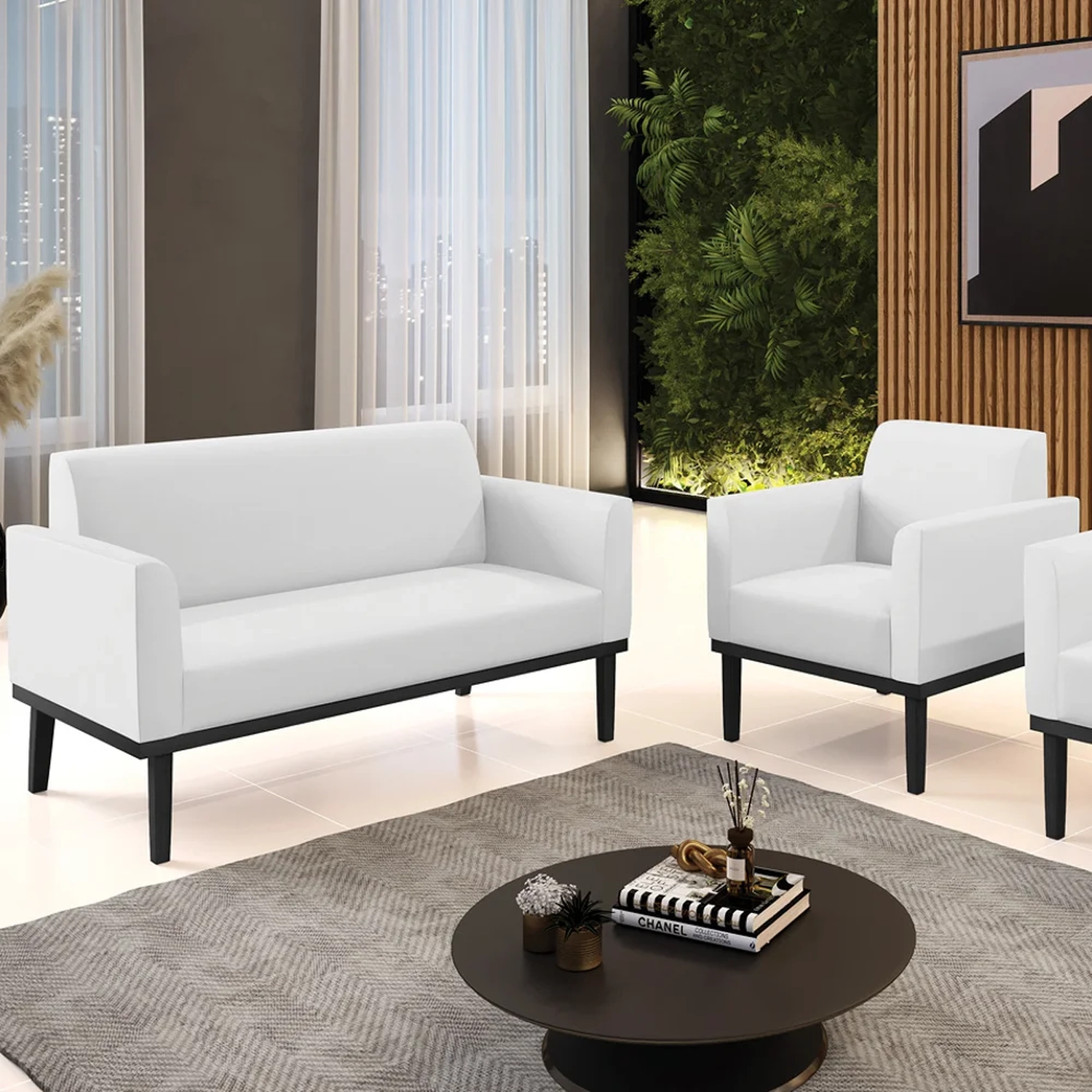 O Sofá Namoradeira e 1 Poltrona Base Madeira Preto Maressa Sintético Branco, da Ibiza é o conjunto ideal para quem busca beleza, conforto e versatilidade. Você pode usar na sua Sala De Estar, recepção ou qualquer outro ambiente que desejar.