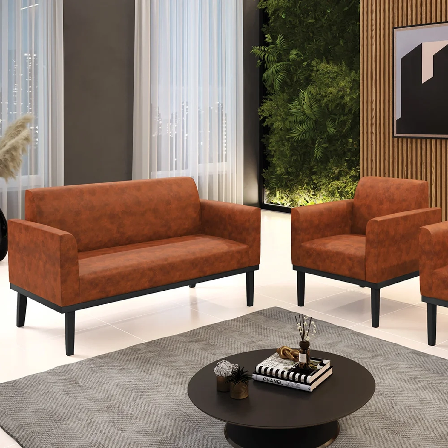 O Sofá Namoradeira e 1 Poltrona Base Madeira Preto Maressa Sintético PU Nozes, da Ibiza é o conjunto ideal para quem busca beleza, conforto e versatilidade. Você pode usar na sua Sala De Estar, recepção ou qualquer outro ambiente que desejar.