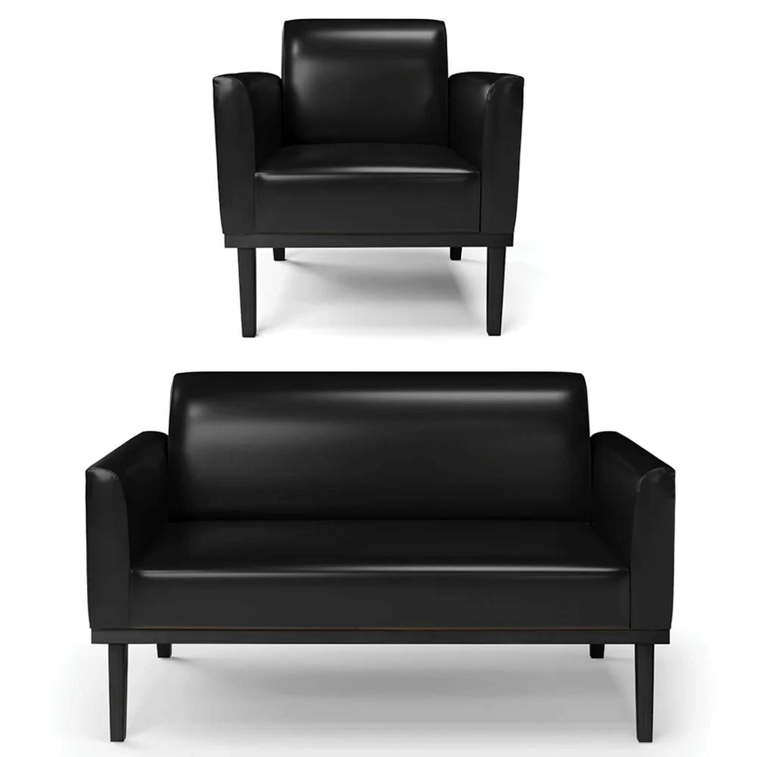 O Sofá Namoradeira e 1 Poltrona Base Madeira Preto Maressa Sintético PU Preto, da Ibiza é o conjunto ideal para quem busca beleza, conforto e versatilidade. Você pode usar na sua Sala De Estar, recepção ou qualquer outro ambiente que desejar.