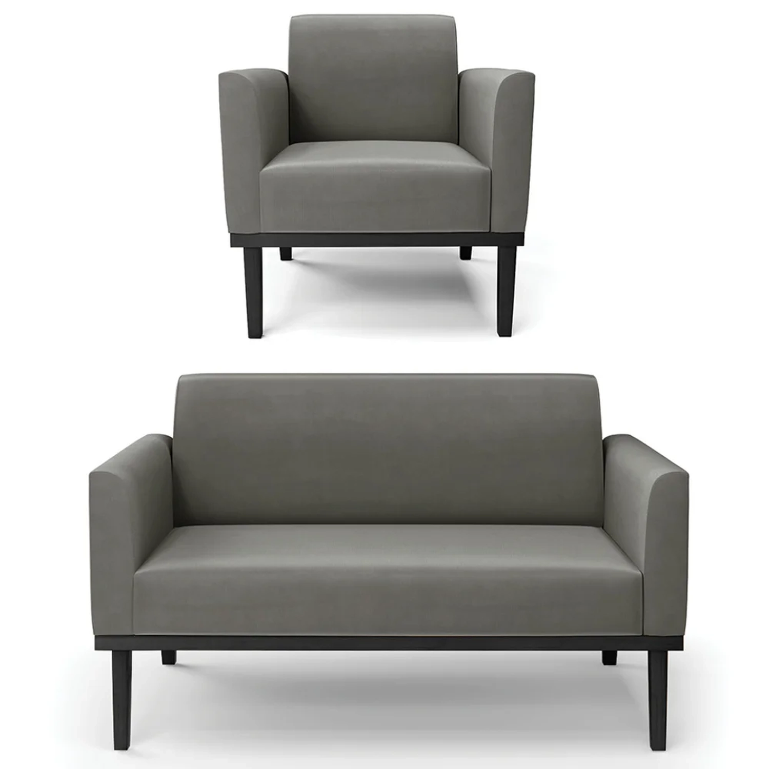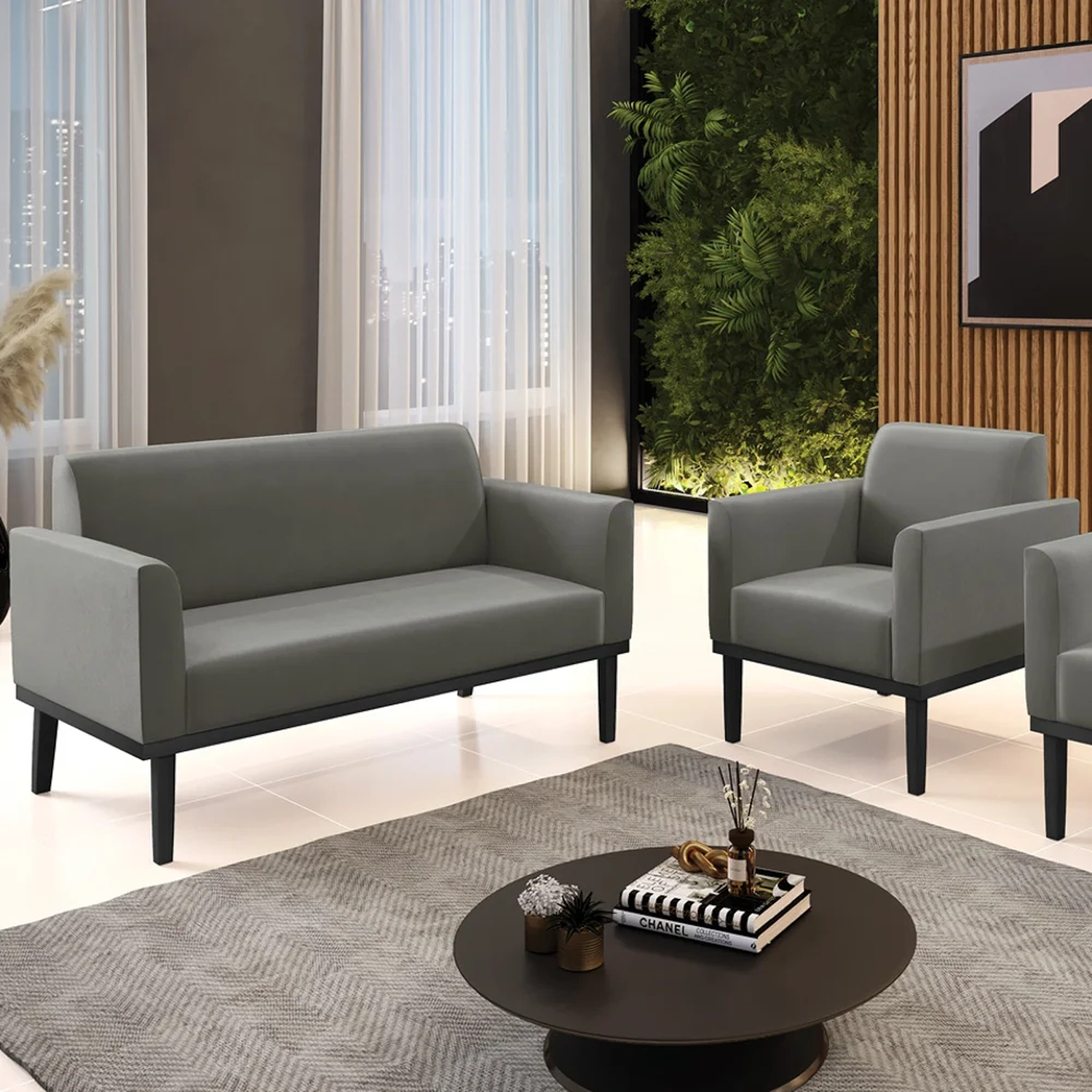 O Sofá Namoradeira e 1 Poltrona Base Madeira Preto Maressa Suede Grafite, da Ibiza é o conjunto ideal para quem busca beleza, conforto e versatilidade. Você pode usar na sua Sala De Estar, recepção ou qualquer outro ambiente que desejar.