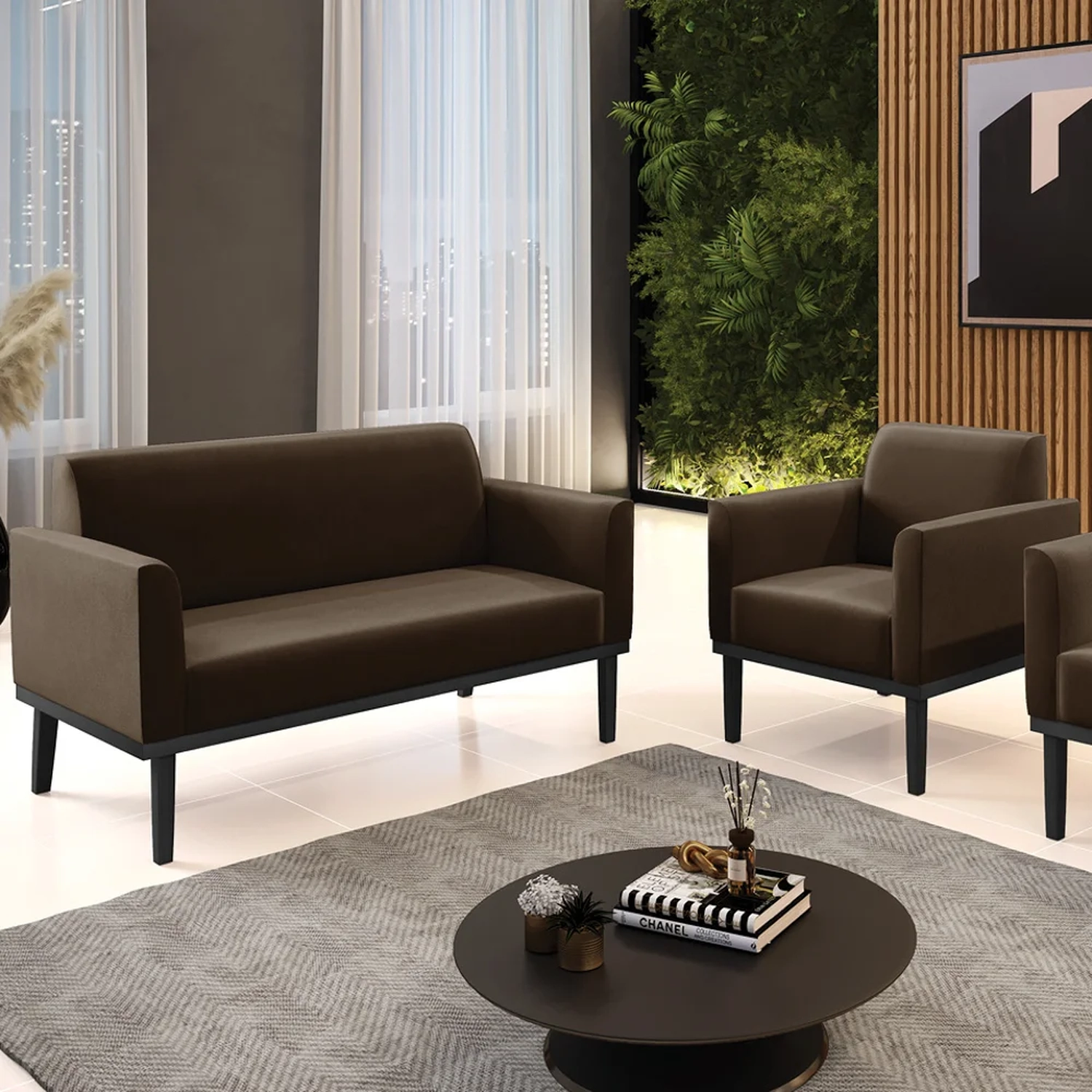 O Sofá Namoradeira e 1 Poltrona Base Madeira Preto Maressa Suede Marrom, da Ibiza é o conjunto ideal para quem busca beleza, conforto e versatilidade. Você pode usar na sua Sala De Estar, recepção ou qualquer outro ambiente que desejar.