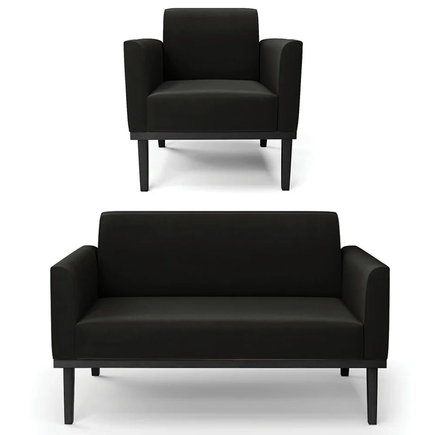 O Sofá Namoradeira e 1 Poltrona Base Madeira Preto Maressa Suede Preto, da Ibiza é o conjunto ideal para quem busca beleza, conforto e versatilidade. Você pode usar na sua Sala De Estar, recepção ou qualquer outro ambiente que desejar.