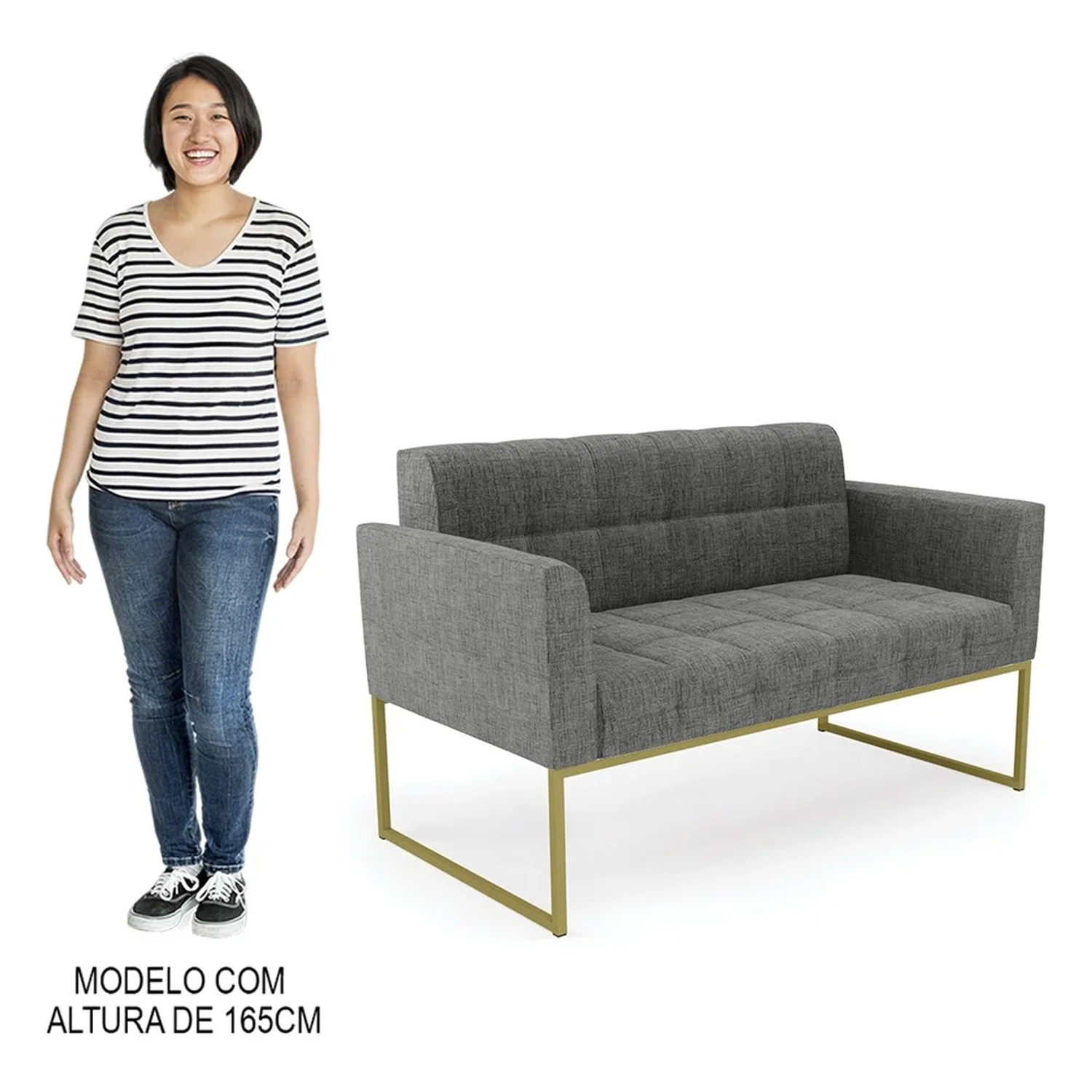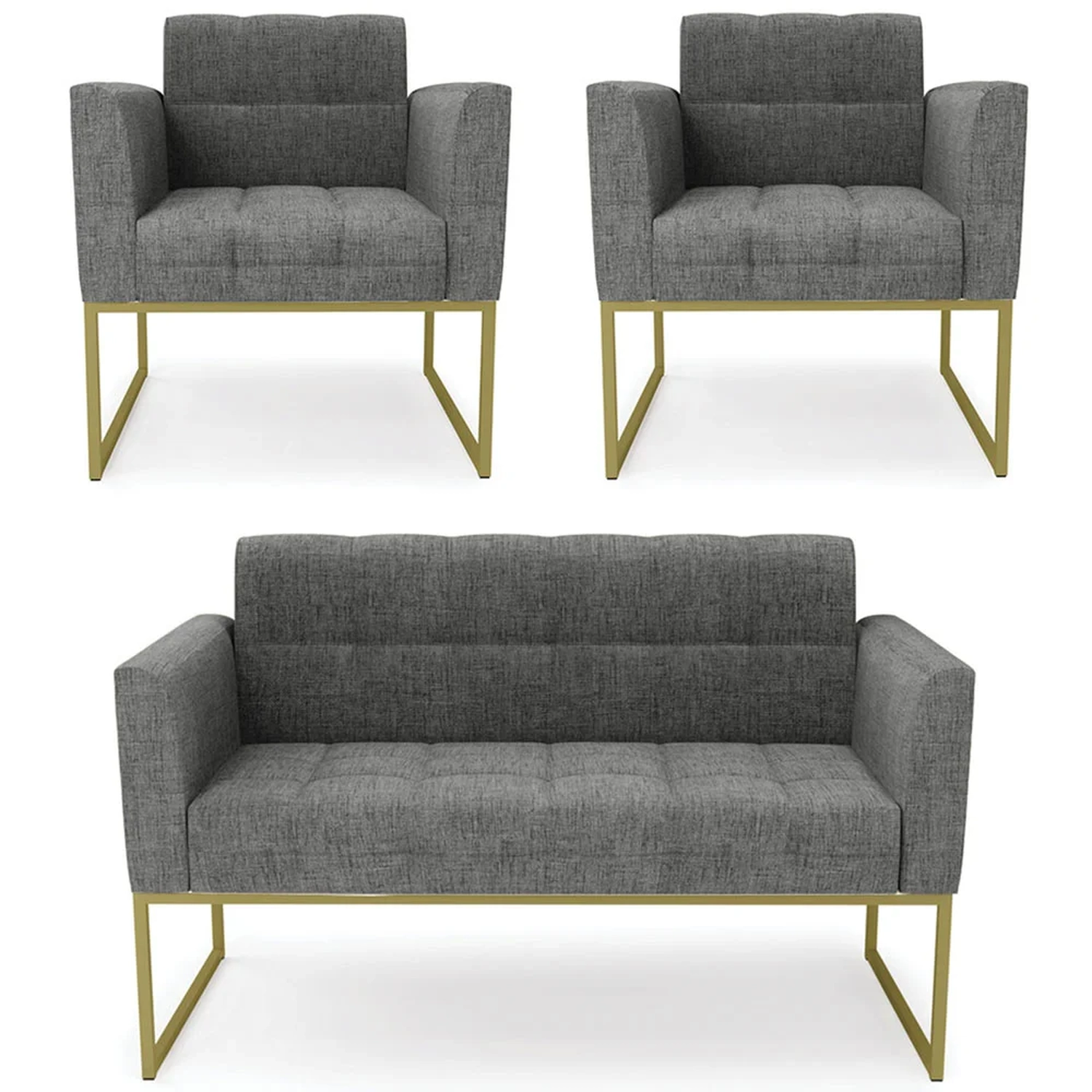 O Sofá Namoradeira e 2 Poltronas Base Industrial Dourado Ana Linho Grafite, da Ibiza é o conjunto ideal para quem busca beleza, conforto e versatilidade. Você pode usar na sua Sala De Estar, recepção ou qualquer outro ambiente que desejar.