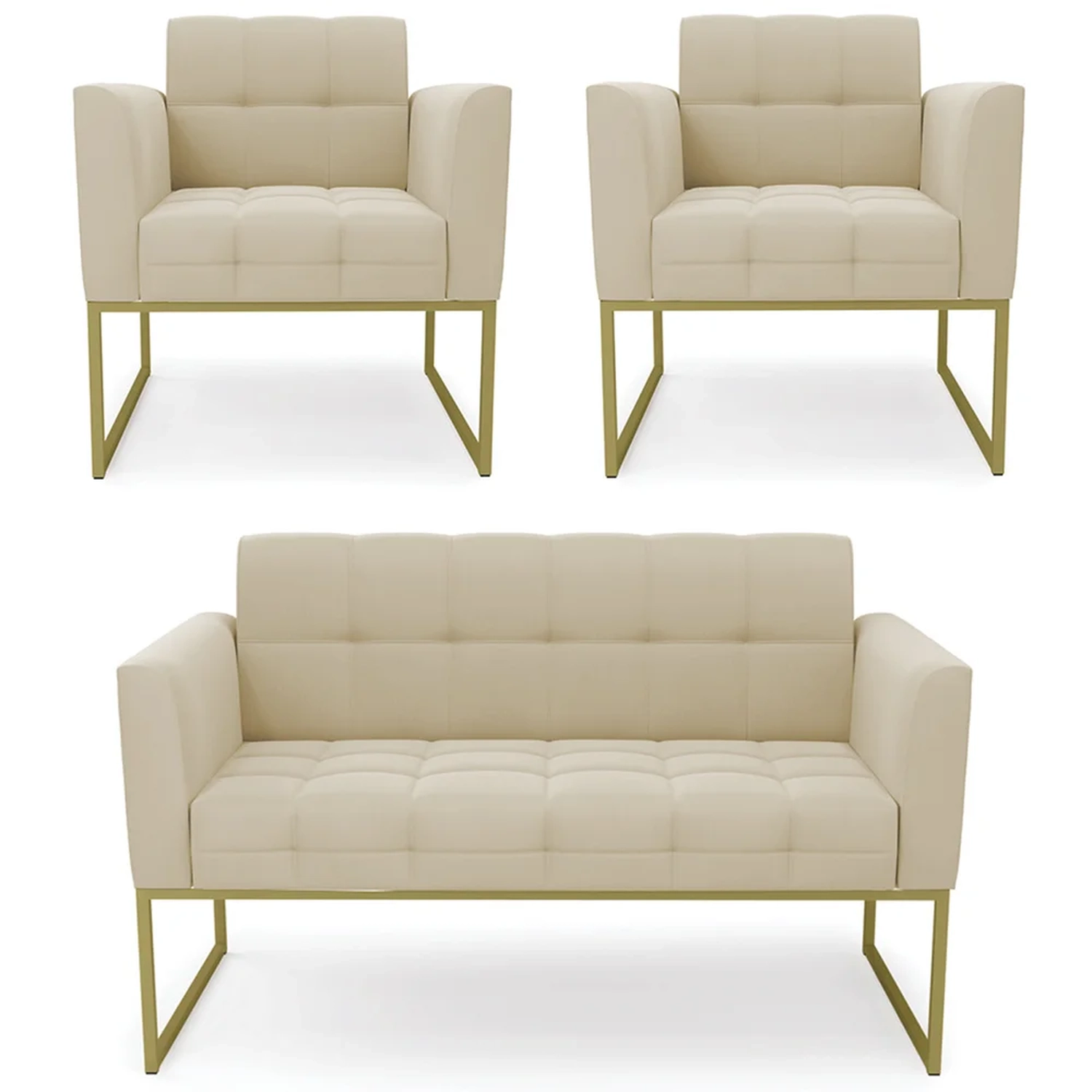 O Sofá Namoradeira e 2 Poltronas Base Industrial Dourado Ana Suede Bege, da Ibiza é o conjunto ideal para quem busca beleza, conforto e versatilidade. Você pode usar na sua Sala De Estar, recepção ou qualquer outro ambiente que desejar.