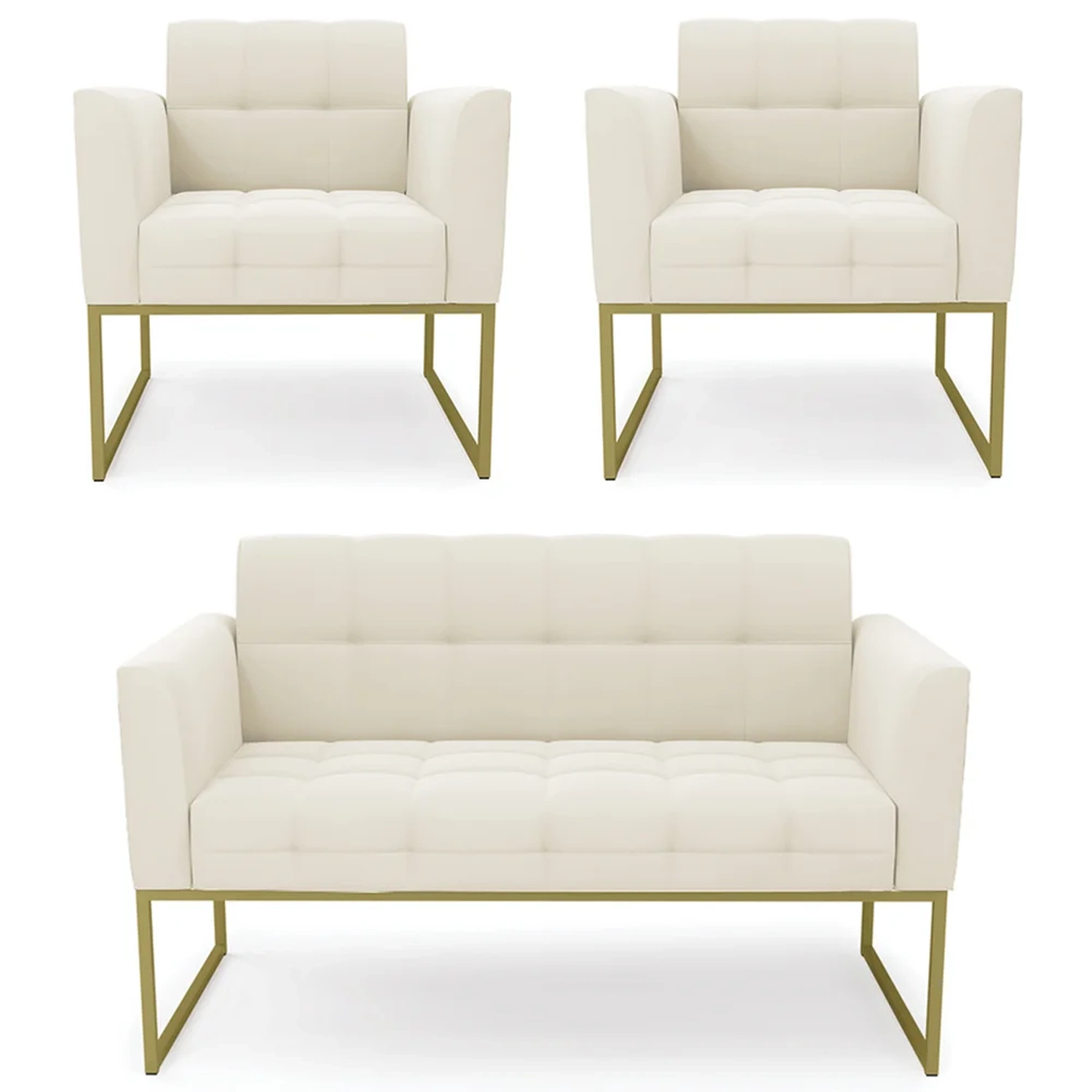 O Sofá Namoradeira e 2 Poltronas Base Industrial Dourado Ana Veludo Bege, da Ibiza é o conjunto ideal para quem busca beleza, conforto e versatilidade. Você pode usar na sua Sala De Estar, recepção ou qualquer outro ambiente que desejar.