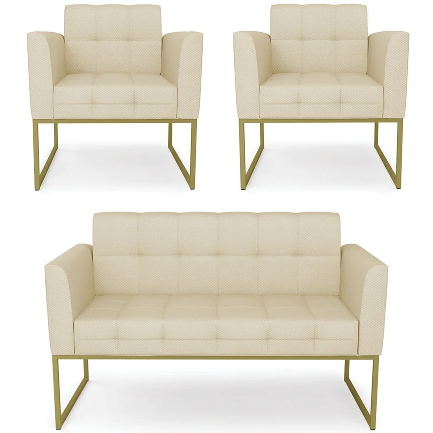O Sofá Namoradeira e 2 Poltronas Base Industrial Dourado Ana Veludo Luxo Off White, da Ibiza é o conjunto ideal para quem busca beleza, conforto e versatilidade. Você pode usar na sua Sala De Estar, recepção ou qualquer outro ambiente que desejar.