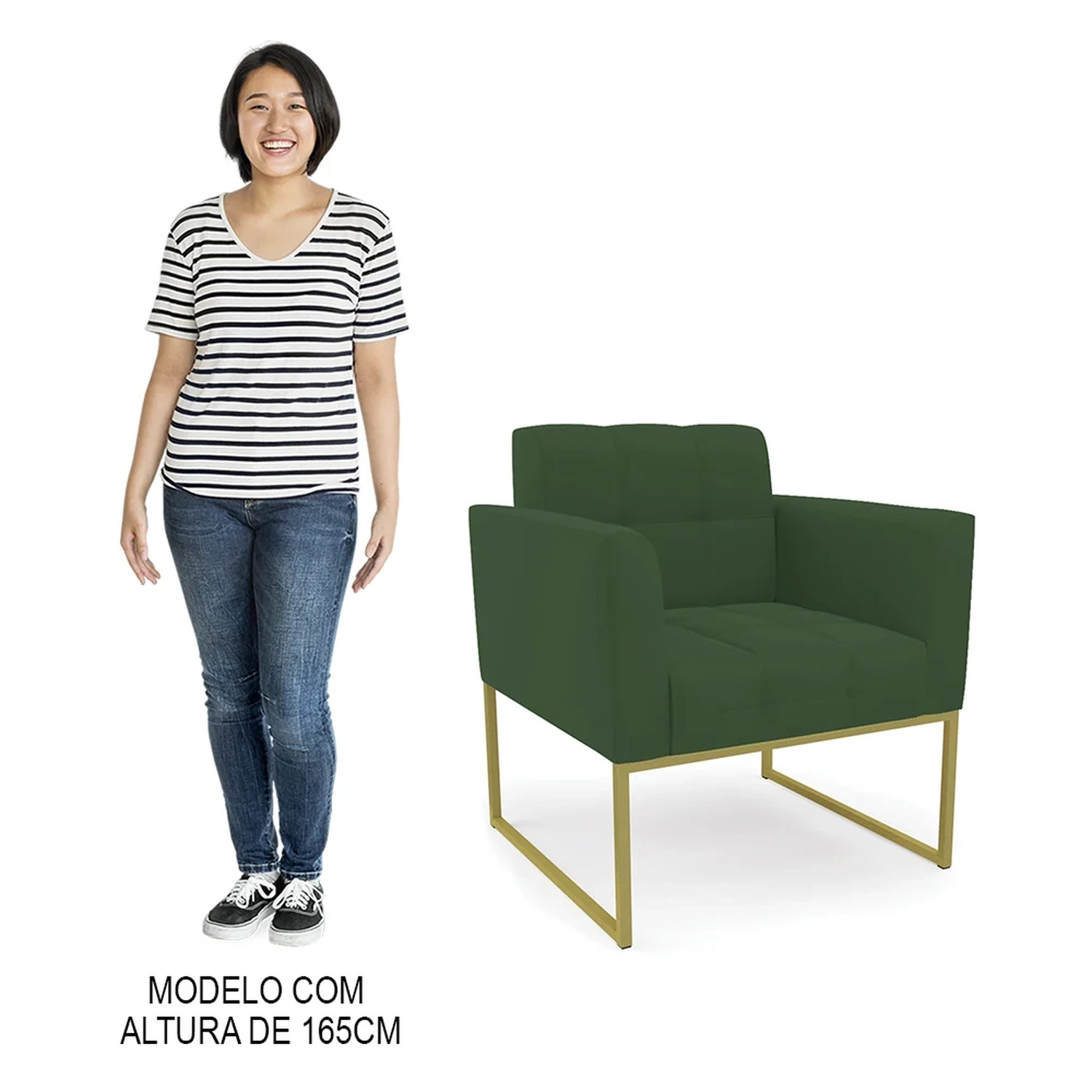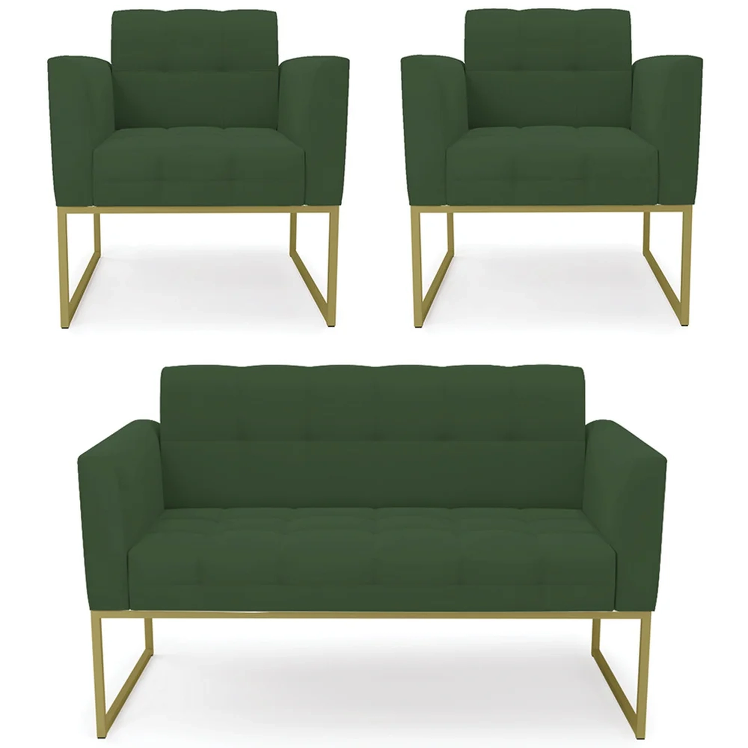 O Sofá Namoradeira e 2 Poltronas Base Industrial Dourado Ana Veludo Verde, da Ibiza é o conjunto ideal para quem busca beleza, conforto e versatilidade. Você pode usar na sua Sala De Estar, recepção ou qualquer outro ambiente que desejar.