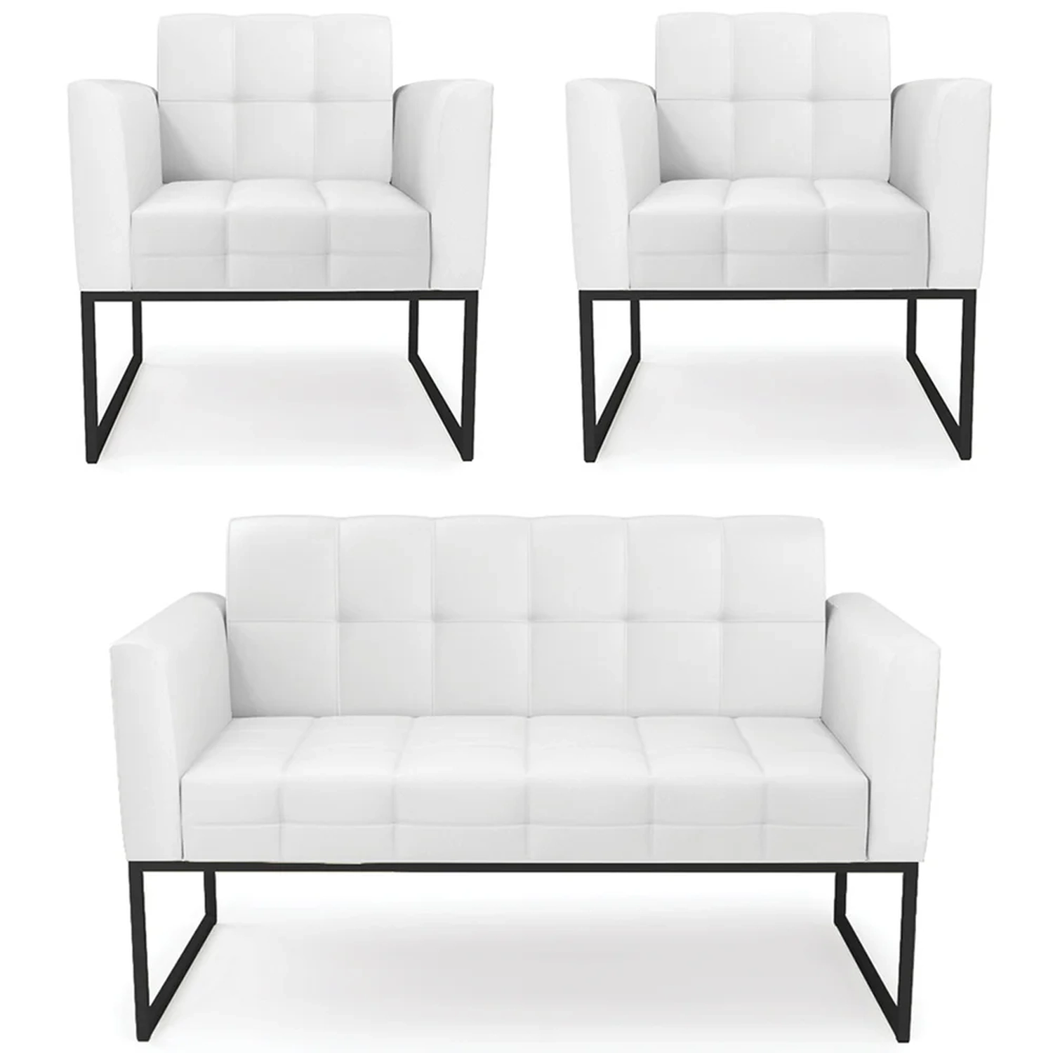 O Sofá Namoradeira e 2 Poltronas Base Industrial Preto Ana Sintético Branco, da Ibiza é o conjunto ideal para quem busca beleza, conforto e versatilidade. Você pode usar na sua Sala De Estar, recepção ou qualquer outro ambiente que desejar.