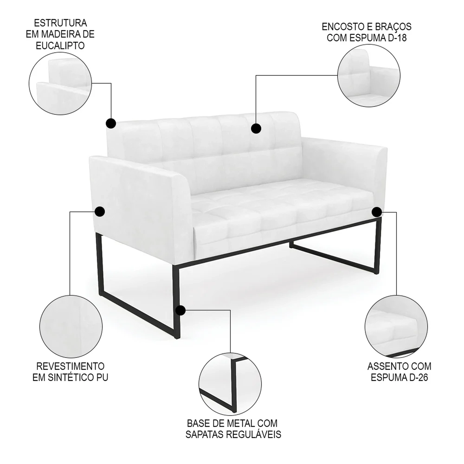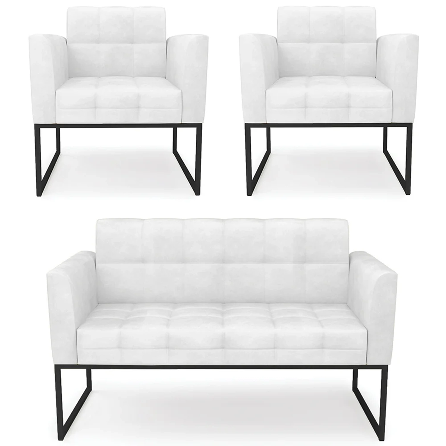 O Sofá Namoradeira e 2 Poltronas Base Industrial Preto Ana Sintético PU Branco, da Ibiza é o conjunto ideal para quem busca beleza, conforto e versatilidade. Você pode usar na sua Sala De Estar, recepção ou qualquer outro ambiente que desejar.