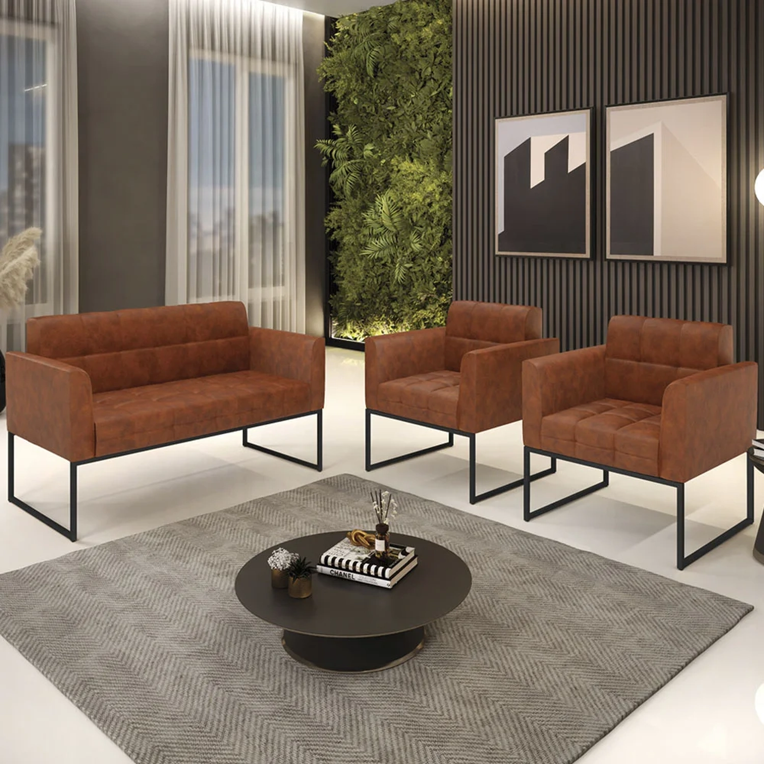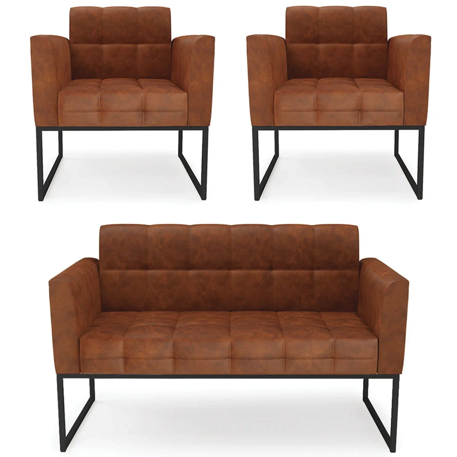 O Sofá Namoradeira e 2 Poltronas Base Industrial Preto Ana Sintético PU Nozes, da Ibiza é o conjunto ideal para quem busca beleza, conforto e versatilidade. Você pode usar na sua Sala De Estar, recepção ou qualquer outro ambiente que desejar.