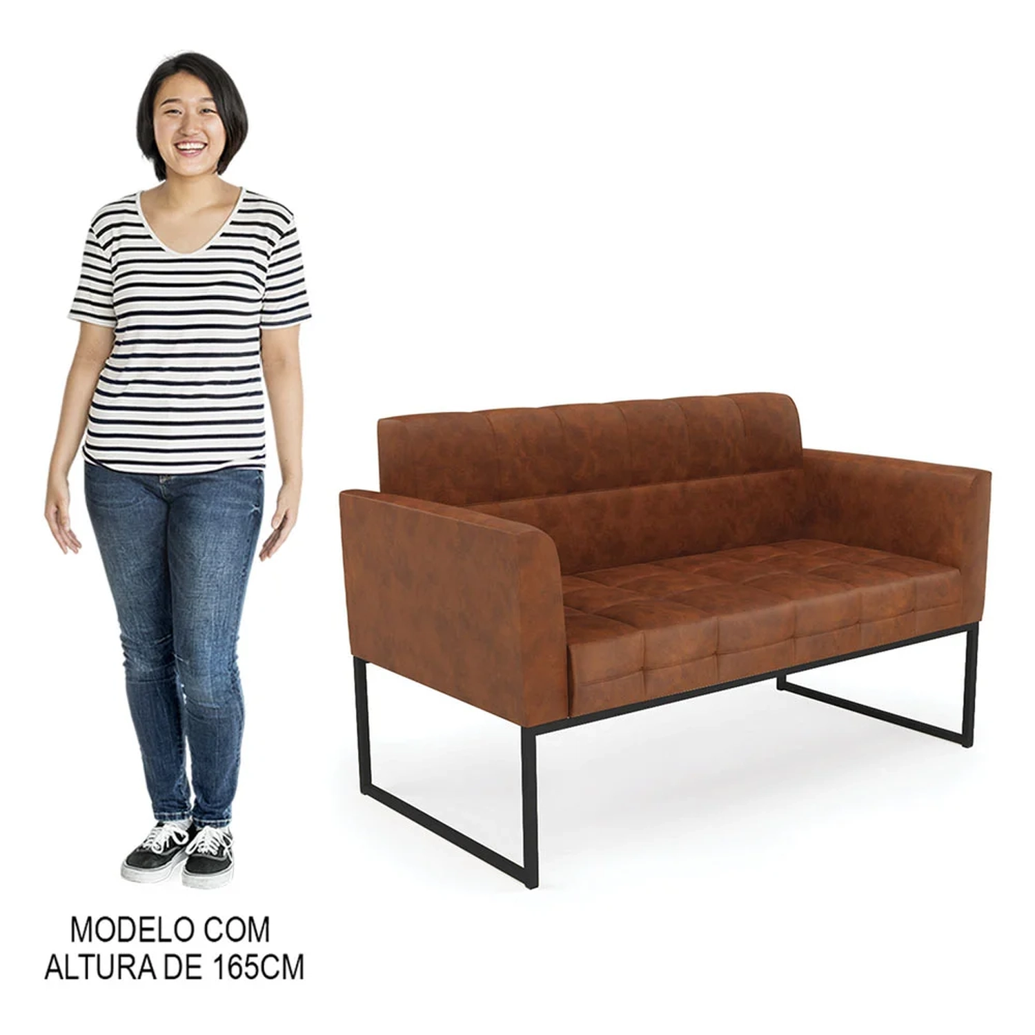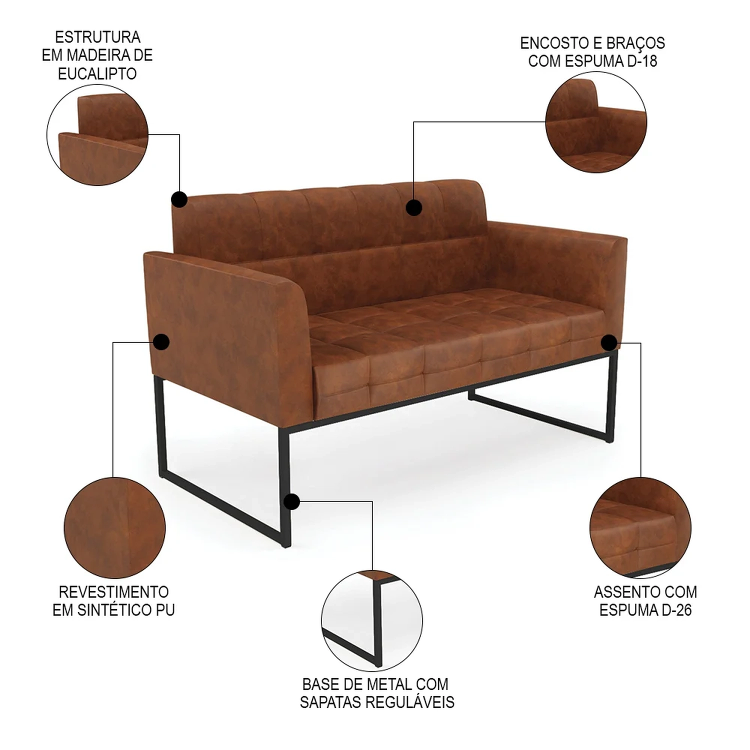 O Sofá Namoradeira e a Poltrona Decorativa são revestidos em sintético PU, que é fácil de limpar e valoriza o design das peças. Eles têm braços e encosto em espuma D-18 e assento em espuma D-26, que oferecem firmeza e aconchego para você relaxar. A base industrial é um detalhe charmoso, que dá um toque moderno e sofisticado ao conjunto. O kit tem uma estrutura resistente e suporta até 120 kg cada peça. A montagem é simples, pois as peças já vêm prontas, bastando fixar a base com os parafusos que acompanham o produto. A limpeza é prática, pois basta usar um pano limpo e levemente úmido, sem produtos abrasivos, para manter o seu kit sempre em bom estado. Hora de transformar seu ambiente com a Namoradeira 2 Lugares e a Poltrona para Sala deixando ainda mais confortável e estiloso.