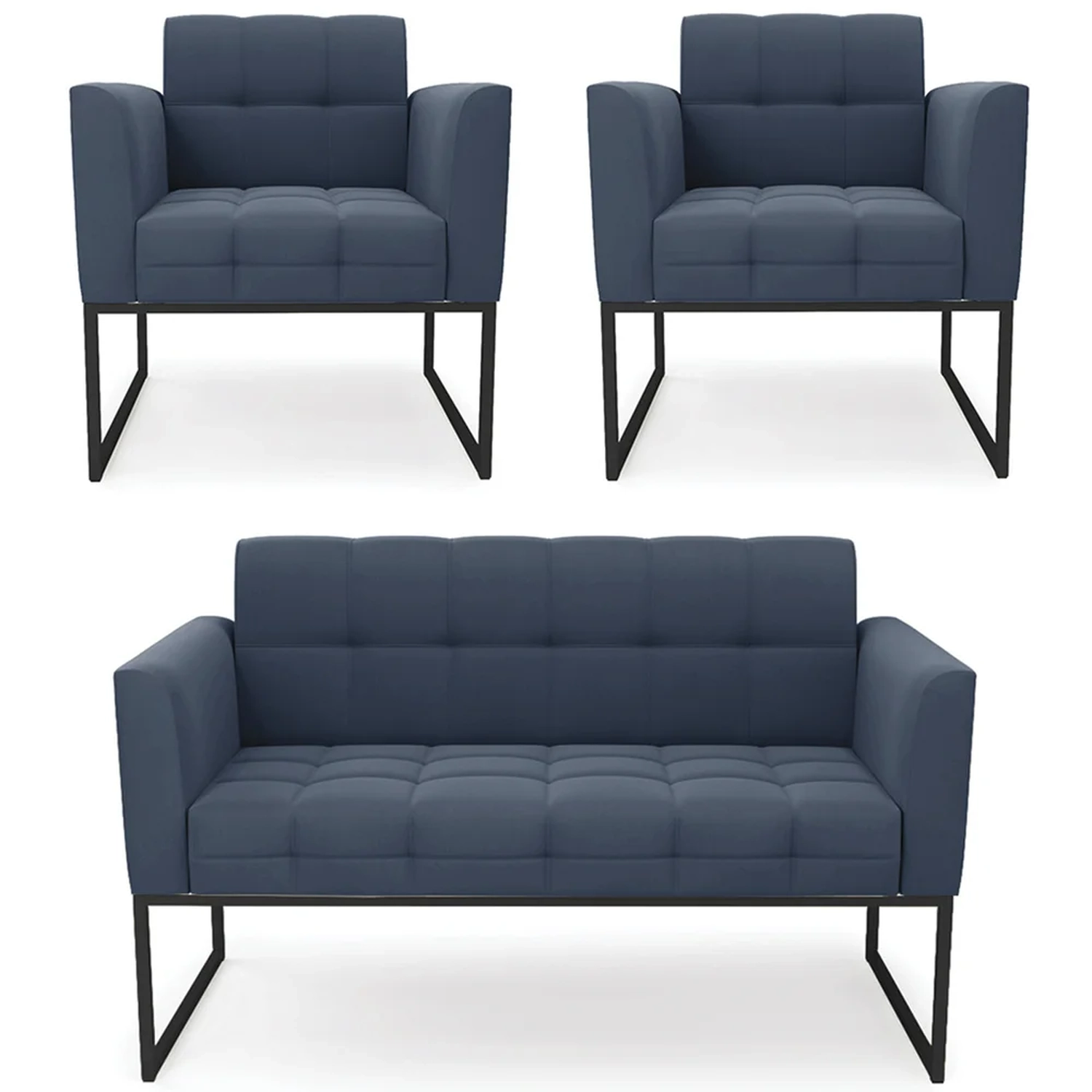 O Sofá Namoradeira e 2 Poltronas Base Industrial Preto Ana Suede Azul Marinho, da Ibiza é o conjunto ideal para quem busca beleza, conforto e versatilidade. Você pode usar na sua Sala De Estar, recepção ou qualquer outro ambiente que desejar.