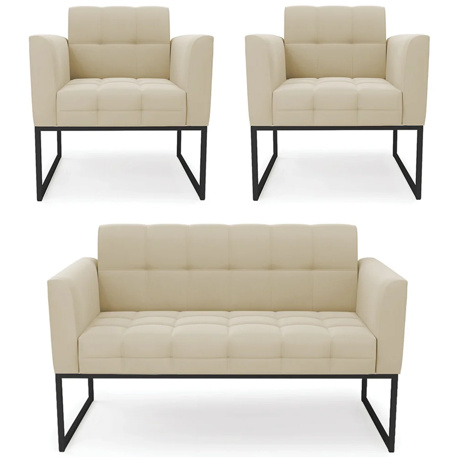 O Sofá Namoradeira e 2 Poltronas Base Industrial Preto Ana Suede Bege, da Ibiza é o conjunto ideal para quem busca beleza, conforto e versatilidade. Você pode usar na sua Sala De Estar, recepção ou qualquer outro ambiente que desejar.