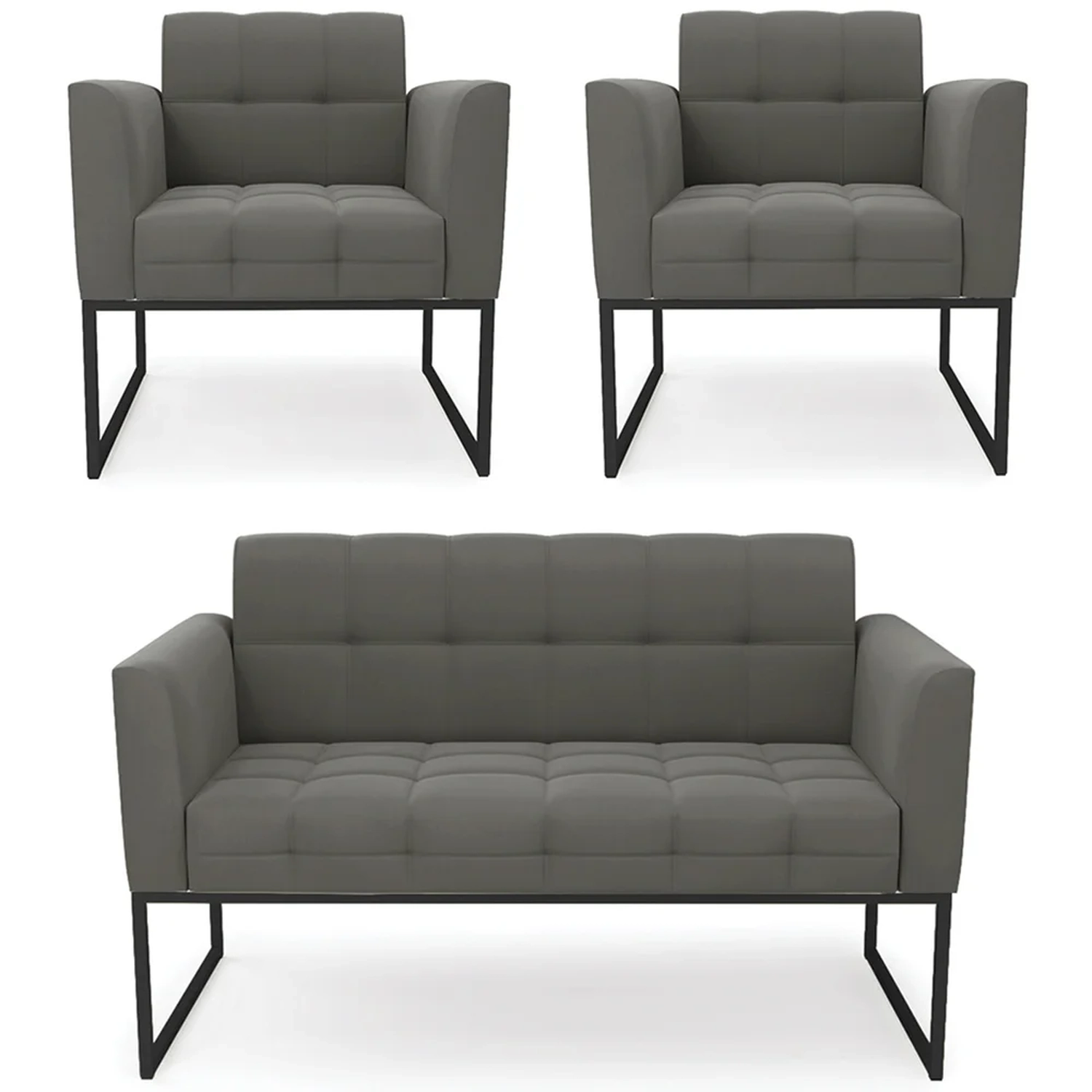 O Sofá Namoradeira e 2 Poltronas Base Industrial Preto Ana Suede Grafite, da Ibiza é o conjunto ideal para quem busca beleza, conforto e versatilidade. Você pode usar na sua Sala De Estar, recepção ou qualquer outro ambiente que desejar.
