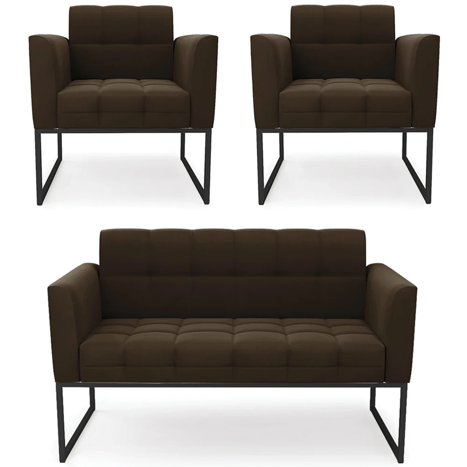 O Sofá Namoradeira e 2 Poltronas Base Industrial Preto Ana Suede Marrom, da Ibiza é o conjunto ideal para quem busca beleza, conforto e versatilidade. Você pode usar na sua Sala De Estar, recepção ou qualquer outro ambiente que desejar.