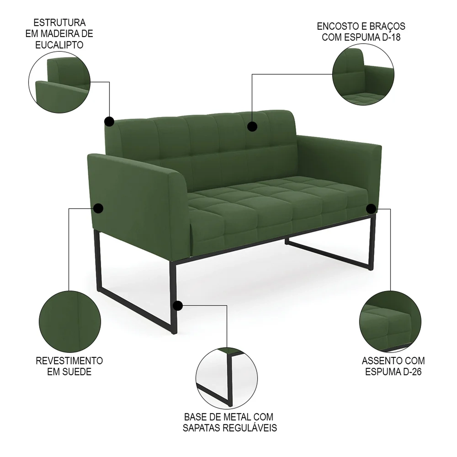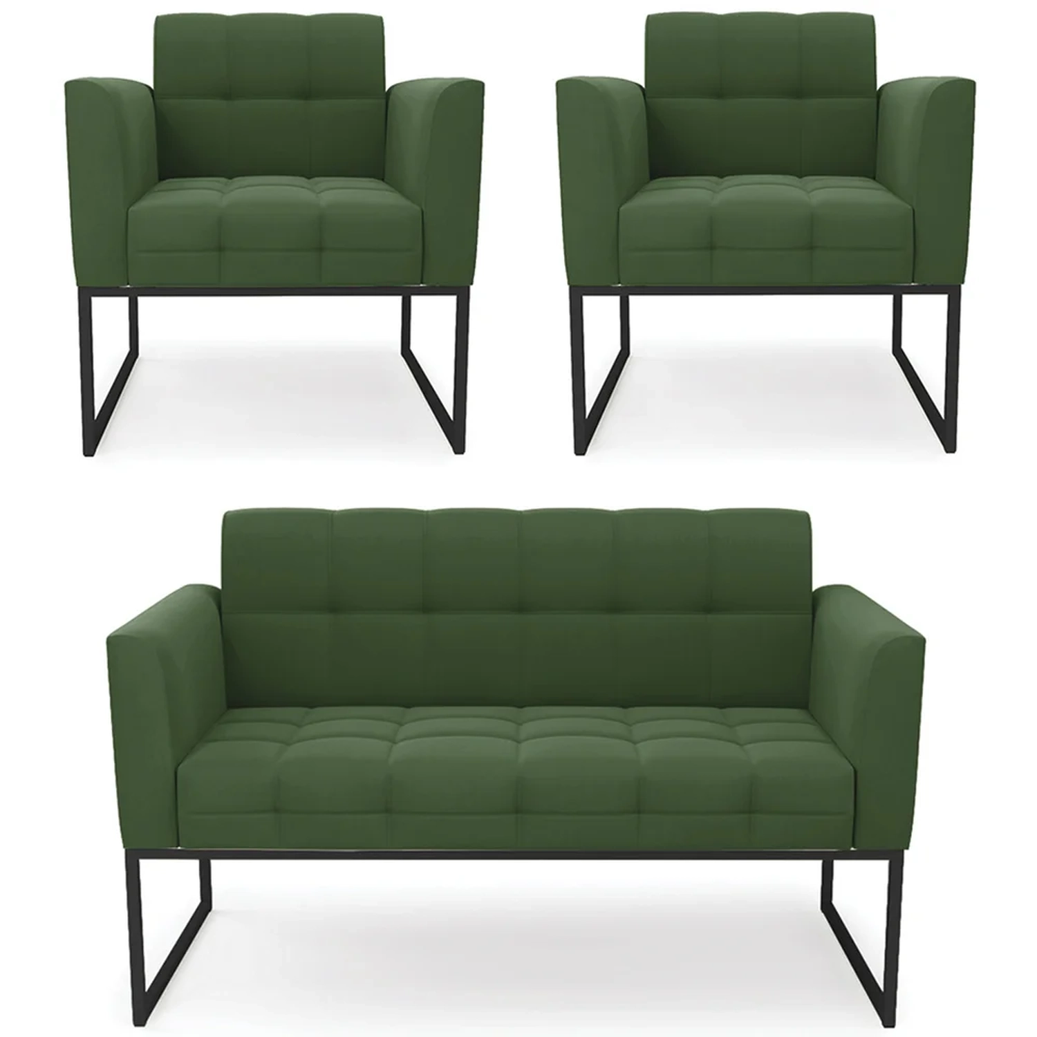 O Sofá Namoradeira e 2 Poltronas Base Industrial Preto Ana Suede Verde, da Ibiza é o conjunto ideal para quem busca beleza, conforto e versatilidade. Você pode usar na sua Sala De Estar, recepção ou qualquer outro ambiente que desejar.