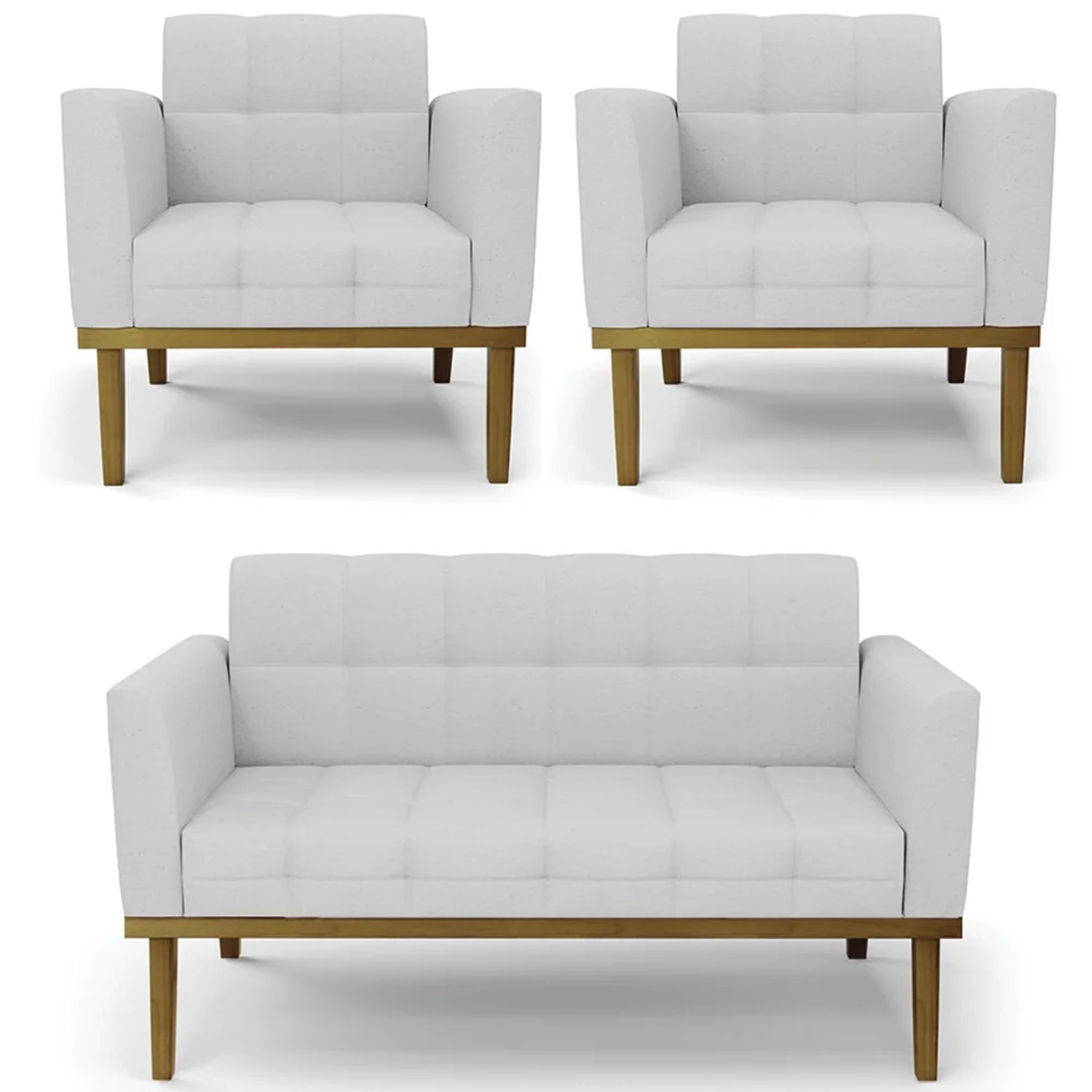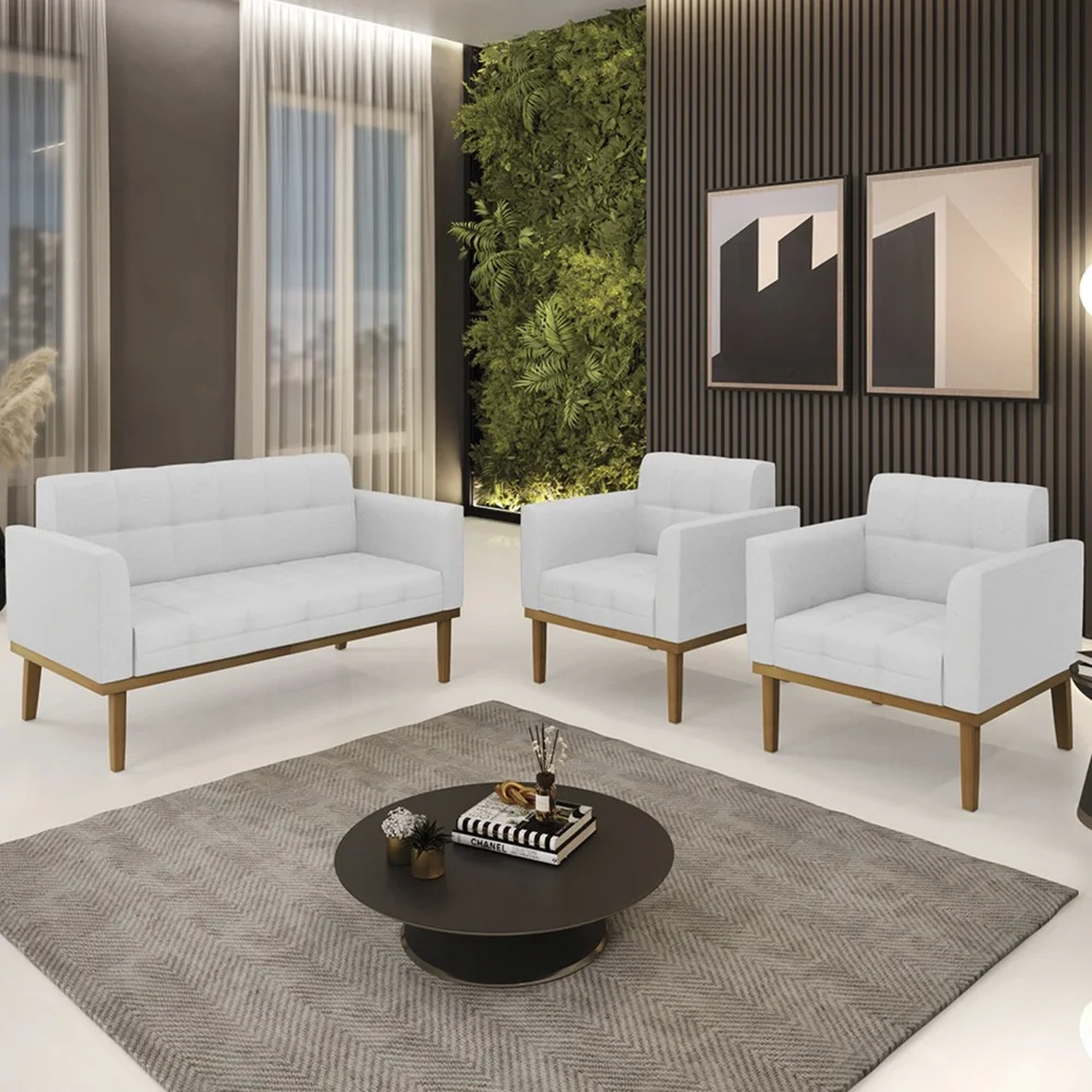 O Sofá Namoradeira e 2 Poltronas Base Madeira Castanho Ana Linho Cinza, da Ibiza é o conjunto ideal para quem busca beleza, conforto e versatilidade. Você pode usar na sua Sala De Estar, recepção ou qualquer outro ambiente que desejar.