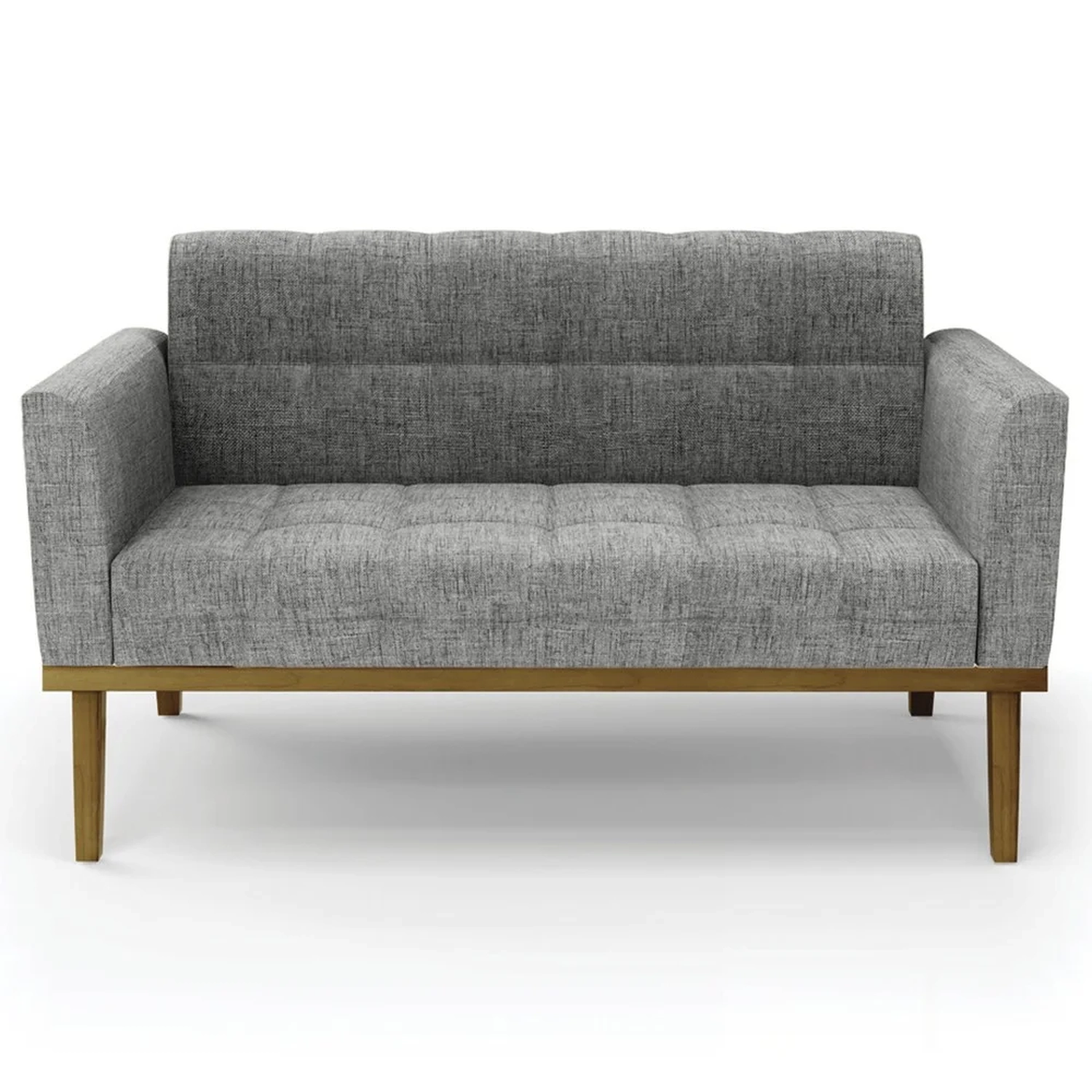 O Sofá Namoradeira e a Poltrona Decorativa são revestidos em Linho, que é fácil de limpar e valoriza o design das peças. Eles têm braços e encosto em espuma D-18 e assento em espuma D-26, que oferecem firmeza e aconchego para você relaxar. A base em madeira de eucalipto castanho é um detalhe charmoso, que dá um toque rústico e sofisticado ao conjunto. O kit tem uma estrutura resistente e suporta até 120 kg cada peça. A montagem é simples, pois as peças já vêm prontas, bastando fixar a base com os parafusos que acompanham o produto. A limpeza é prática, pois basta usar um pano limpo e levemente úmido, sem produtos abrasivos, para manter o seu kit sempre em bom estado. Hora de transformar seu ambiente com a Namoradeira 2 Lugares e a Poltrona para Sala deixando ainda mais confortável e estiloso.