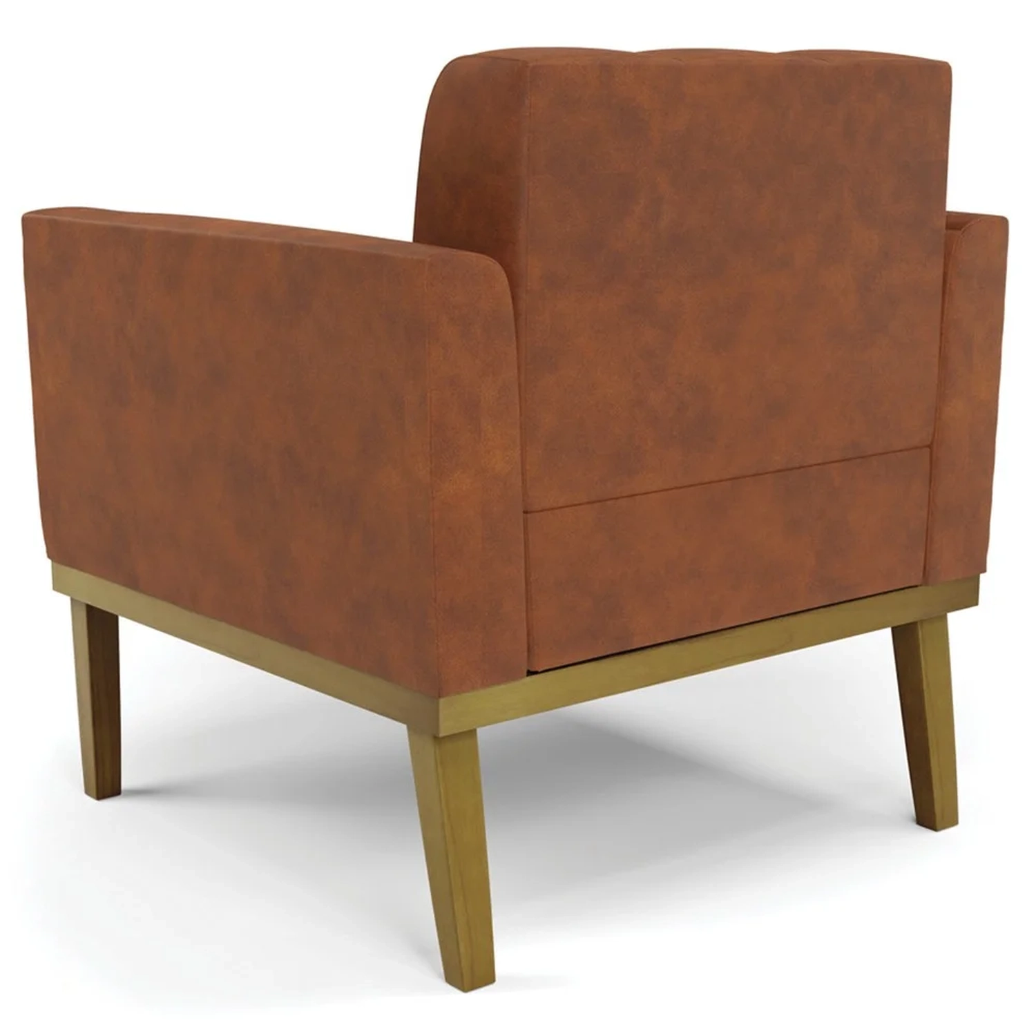 O Sofá Namoradeira e a Poltrona Decorativa são revestidos em sintético PU, que é fácil de limpar e valoriza o design das peças. Eles têm braços e encosto em espuma D-18 e assento em espuma D-26, que oferecem firmeza e aconchego para você relaxar. A base em madeira de eucalipto castanho é um detalhe charmoso, que dá um toque rústico e sofisticado ao conjunto. O kit tem uma estrutura resistente e suporta até 120 kg cada peça. A montagem é simples, pois as peças já vêm prontas, bastando fixar a base com os parafusos que acompanham o produto. A limpeza é prática, pois basta usar um pano limpo e levemente úmido, sem produtos abrasivos, para manter o seu kit sempre em bom estado. Hora de transformar seu ambiente com a Namoradeira 2 Lugares e a Poltrona para Sala deixando ainda mais confortável e estiloso.