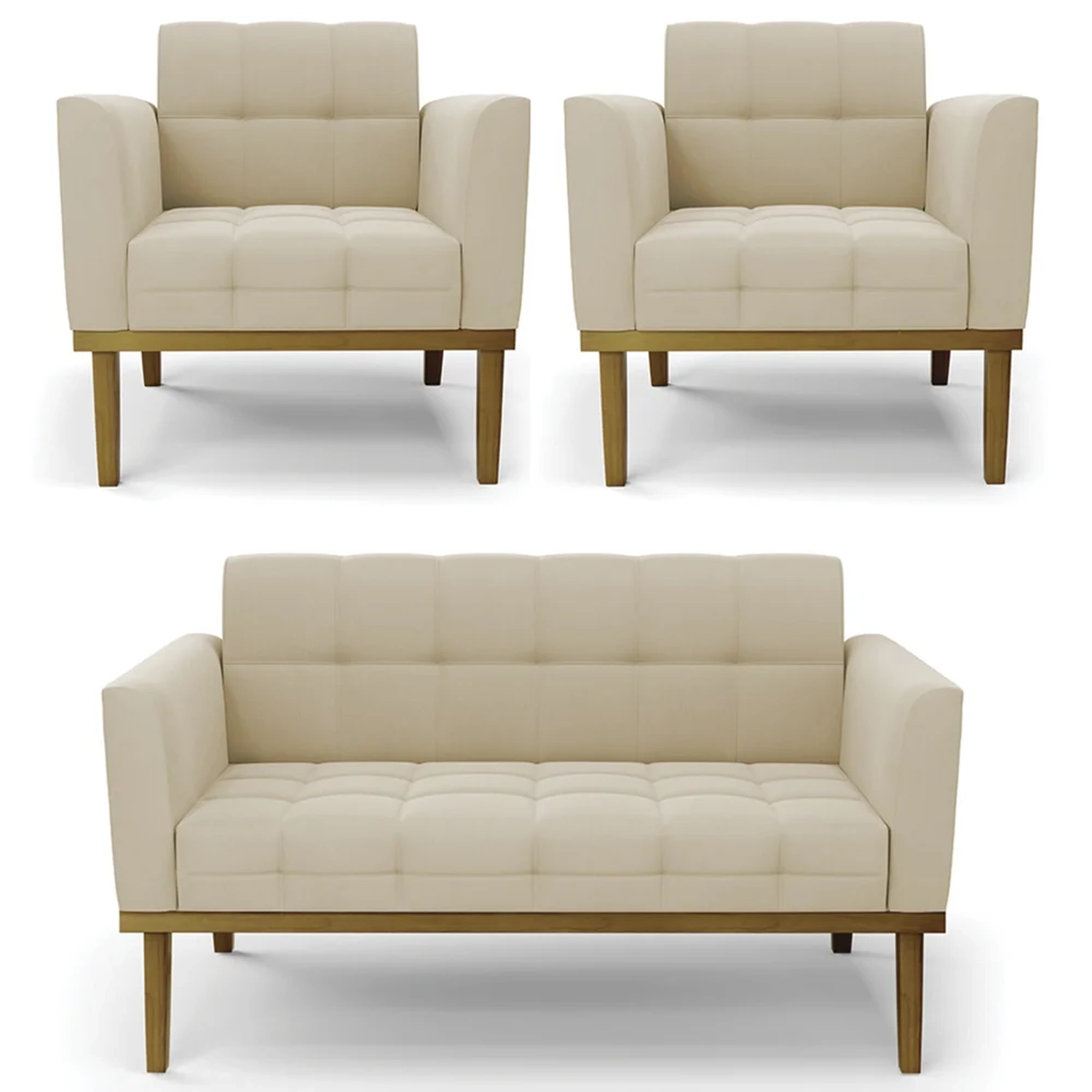 O Sofá Namoradeira e 2 Poltronas Base Madeira Castanho Ana Suede Bege, da Ibiza é o conjunto ideal para quem busca beleza, conforto e versatilidade. Você pode usar na sua Sala De Estar, recepção ou qualquer outro ambiente que desejar.