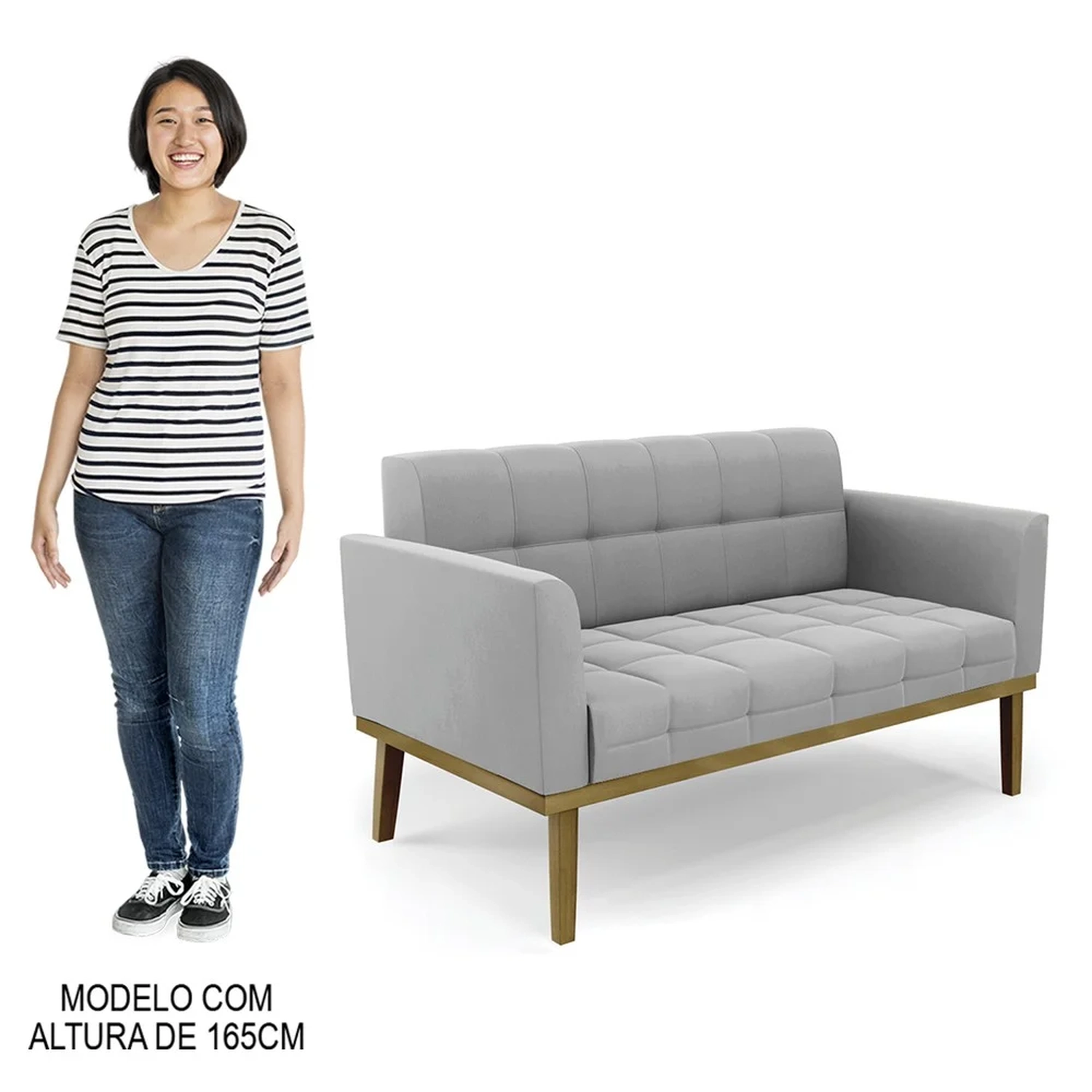 O Sofá Namoradeira e a Poltrona Decorativa são revestidos em Suede, que é fácil de limpar e valoriza o design das peças. Eles têm braços e encosto em espuma D-18 e assento em espuma D-26, que oferecem firmeza e aconchego para você relaxar. A base em madeira de eucalipto castanho é um detalhe charmoso, que dá um toque rústico e sofisticado ao conjunto. O kit tem uma estrutura resistente e suporta até 120 kg cada peça. A montagem é simples, pois as peças já vêm prontas, bastando fixar a base com os parafusos que acompanham o produto. A limpeza é prática, pois basta usar um pano limpo e levemente úmido, sem produtos abrasivos, para manter o seu kit sempre em bom estado. Hora de transformar seu ambiente com a Namoradeira 2 Lugares e a Poltrona para Sala deixando ainda mais confortável e estiloso.