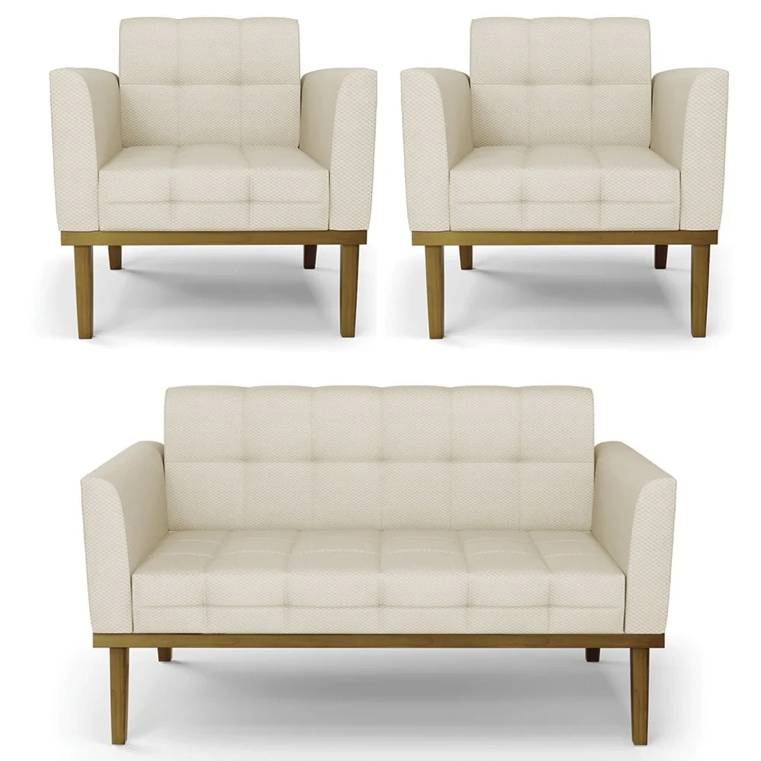 O Sofá Namoradeira e 2 Poltronas Base Madeira Castanho Ana Veludo Luxo Off White, da Ibiza é o conjunto ideal para quem busca beleza, conforto e versatilidade. Você pode usar na sua Sala De Estar, recepção ou qualquer outro ambiente que desejar.