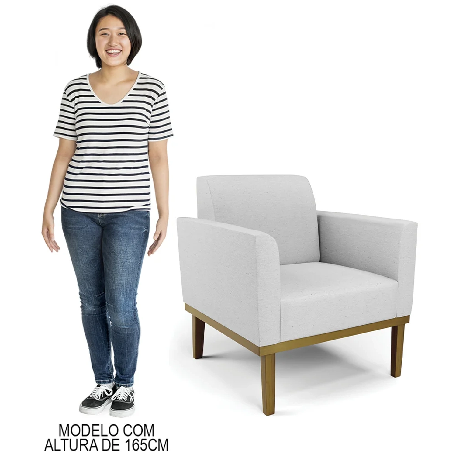 O Sofá Namoradeira e a Poltrona Decorativa são revestidos em Linho, que é fácil de limpar e valoriza o design das peças. Eles têm braços e encosto em espuma D-18 e assento em espuma D-26, que oferecem firmeza e aconchego para você relaxar. A base em madeira de eucalipto castanho é um detalhe charmoso, que dá um toque rústico e sofisticado ao conjunto. O kit tem uma estrutura resistente e suporta até 120 kg cada peça. A montagem é simples, pois as peças já vêm prontas, bastando fixar a base com os parafusos que acompanham o produto. A limpeza é prática, pois basta usar um pano limpo e levemente úmido, sem produtos abrasivos, para manter o seu kit sempre em bom estado. Hora de transformar seu ambiente com a Namoradeira 2 Lugares e a Poltrona para Sala deixando ainda mais confortável e estiloso.