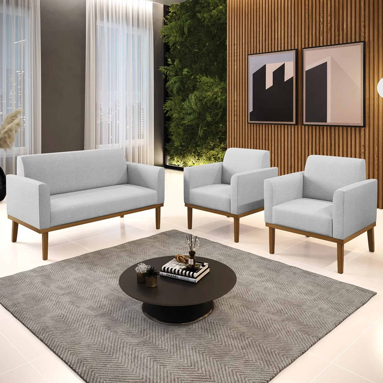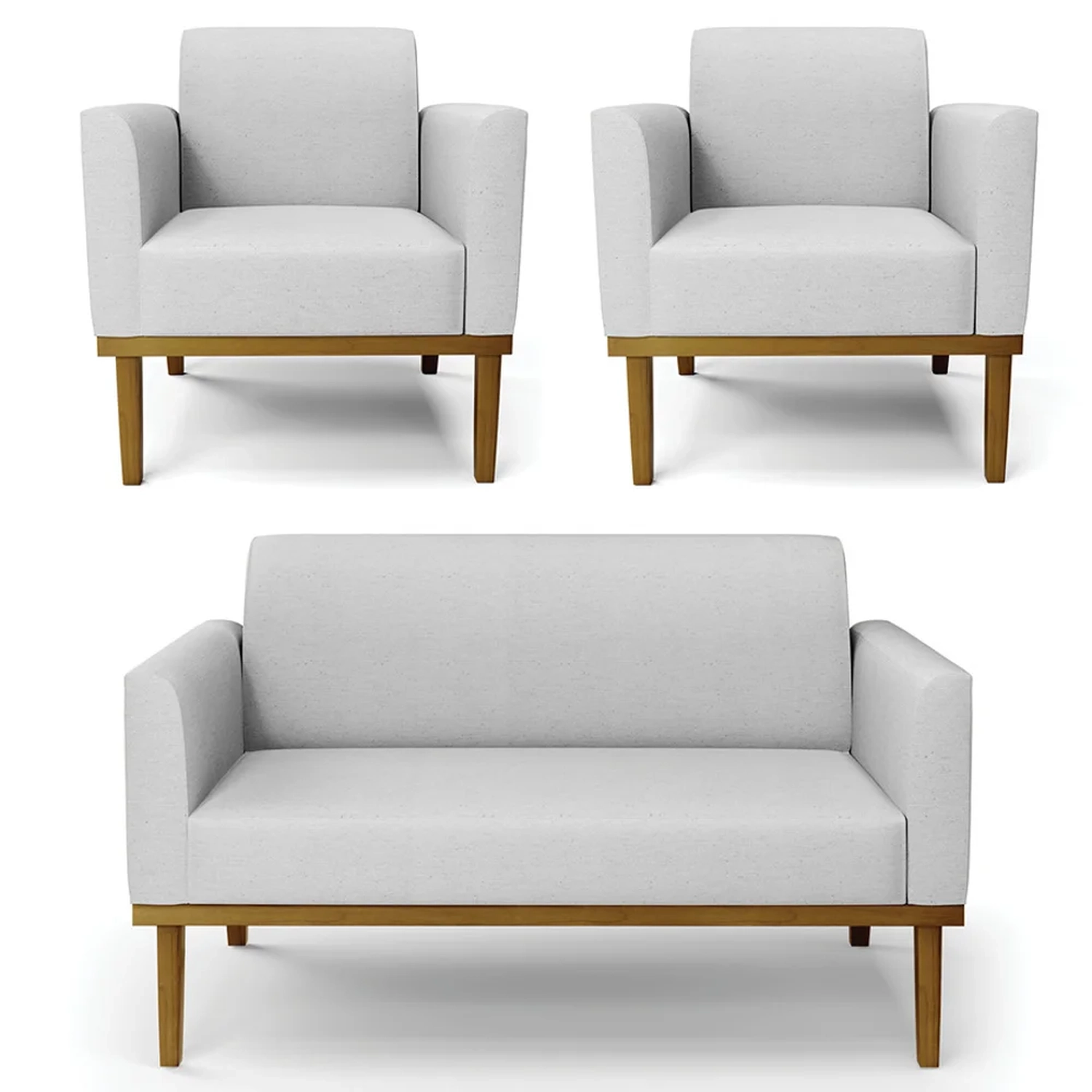 O Sofá Namoradeira e 2 Poltronas Base Madeira Castanho Maressa Linho Cinza, da Ibiza é o conjunto ideal para quem busca beleza, conforto e versatilidade. Você pode usar na sua Sala De Estar, recepção ou qualquer outro ambiente que desejar.