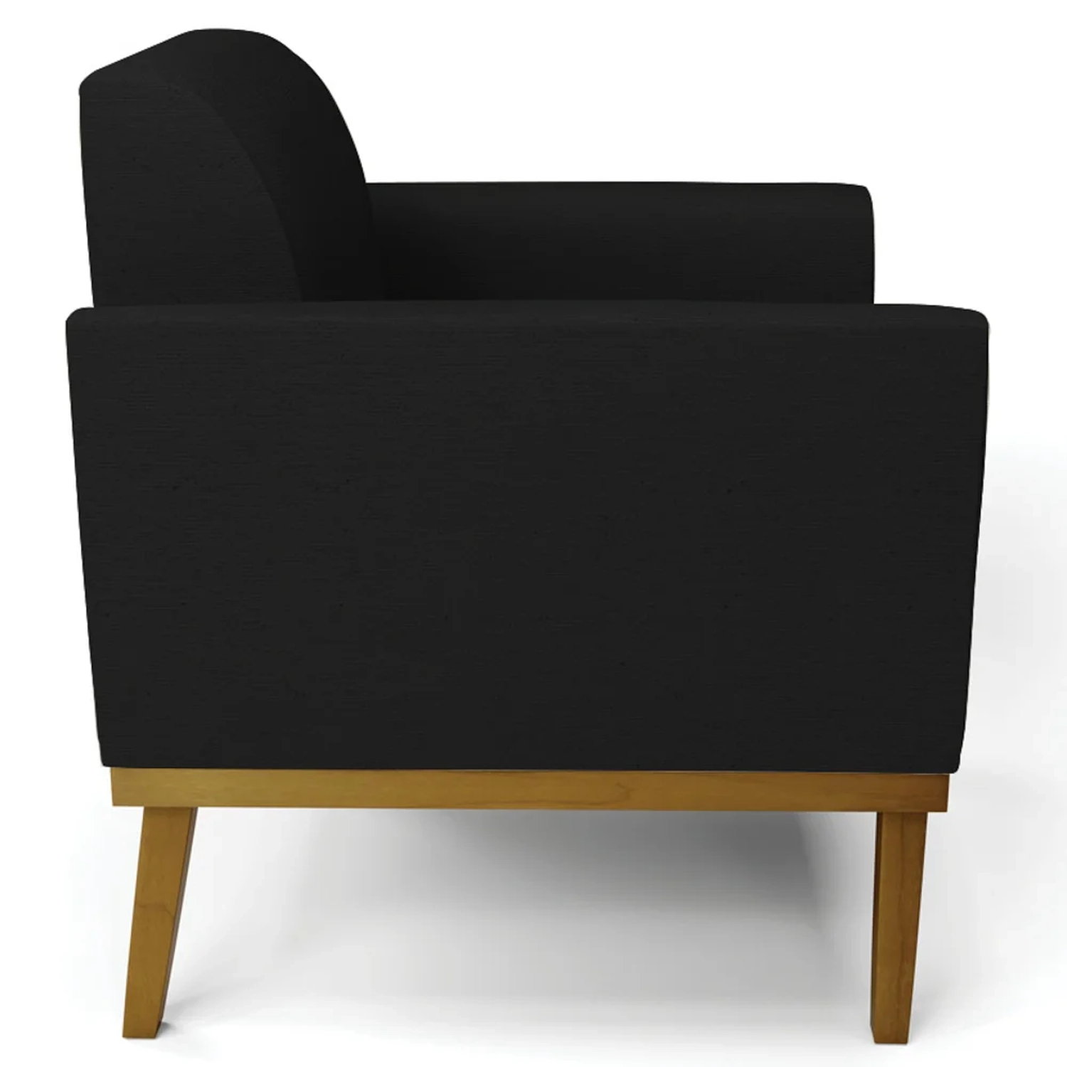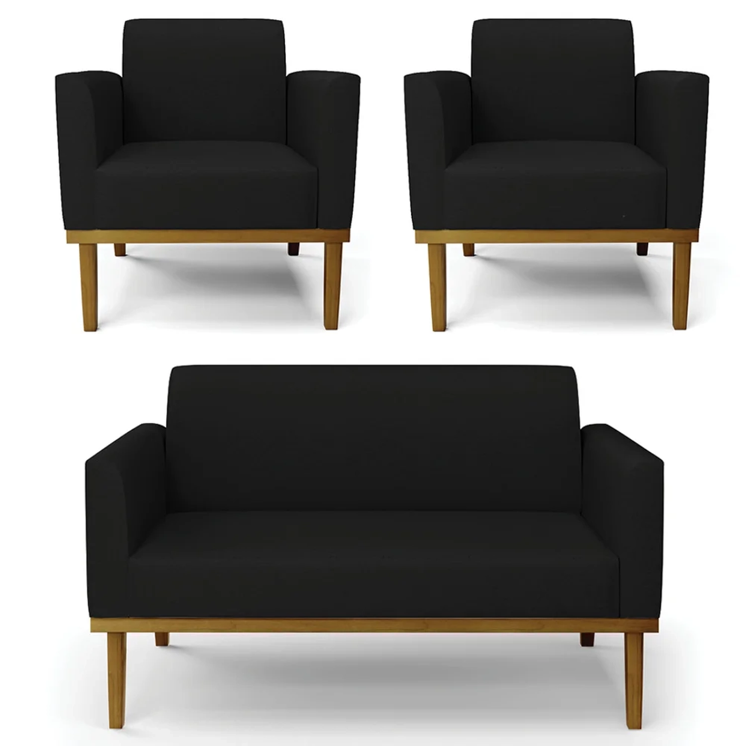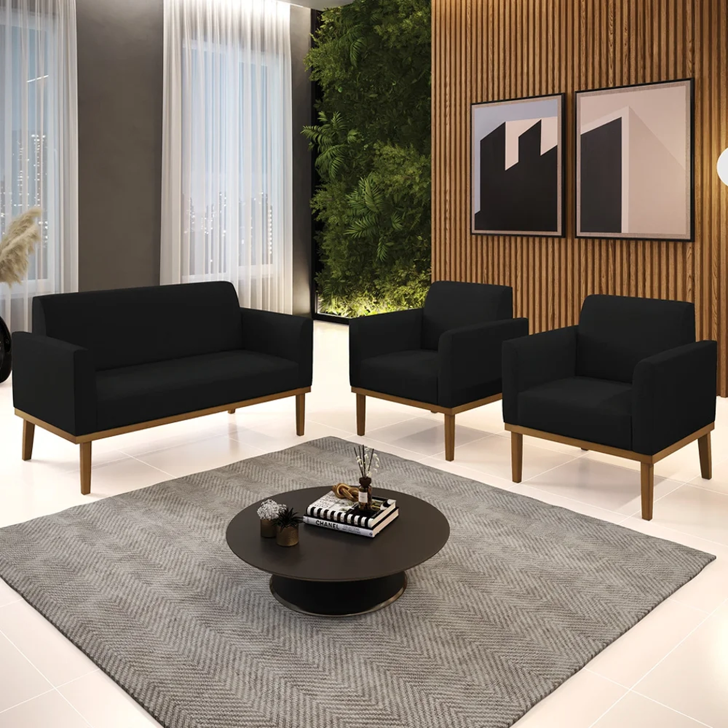 O Sofá Namoradeira e 2 Poltronas Base Madeira Castanho Maressa Linho Preto, da Ibiza é o conjunto ideal para quem busca beleza, conforto e versatilidade. Você pode usar na sua Sala De Estar, recepção ou qualquer outro ambiente que desejar.