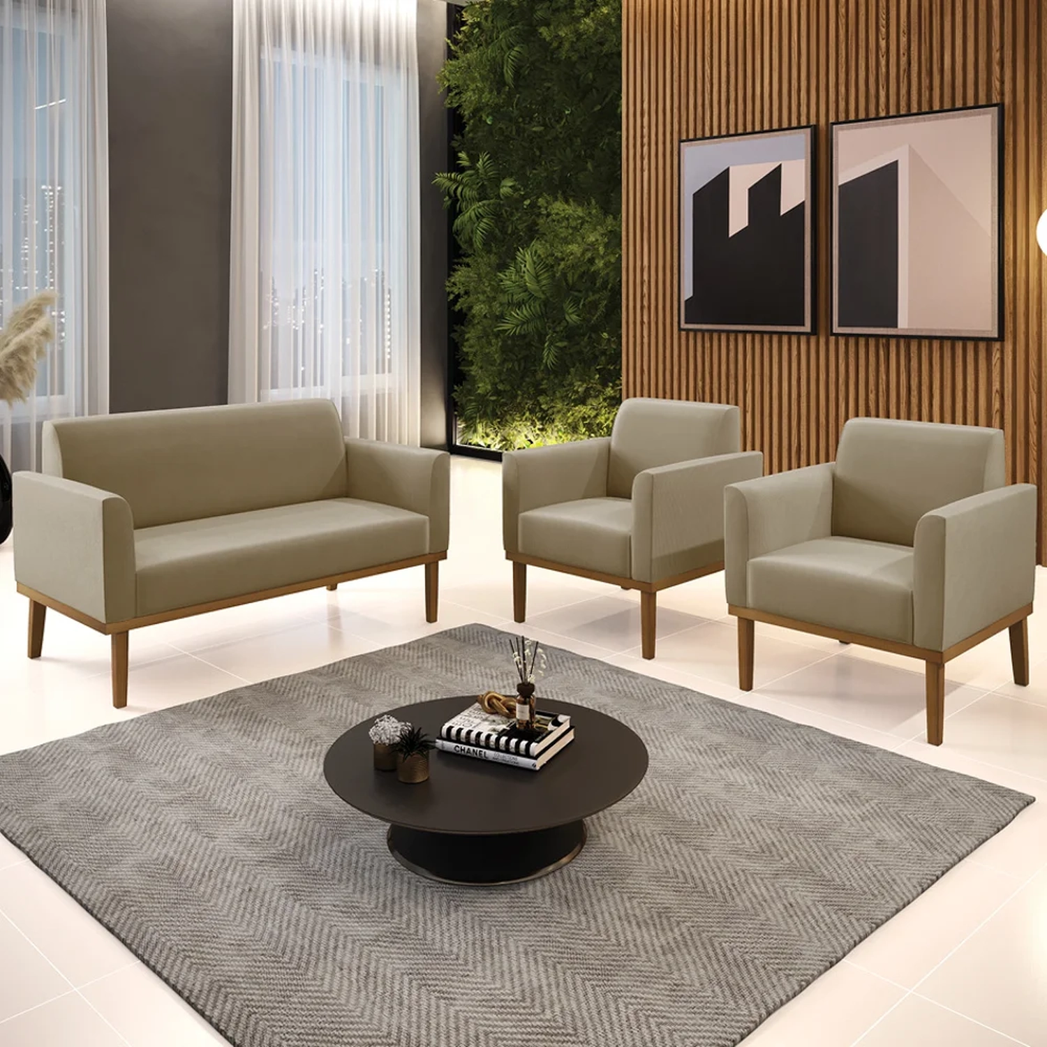 O Sofá Namoradeira e 2 Poltronas Base Madeira Castanho Maressa Suede Marrom RT, da Ibiza é o conjunto ideal para quem busca beleza, conforto e versatilidade. Você pode usar na sua Sala De Estar, recepção ou qualquer outro ambiente que desejar.