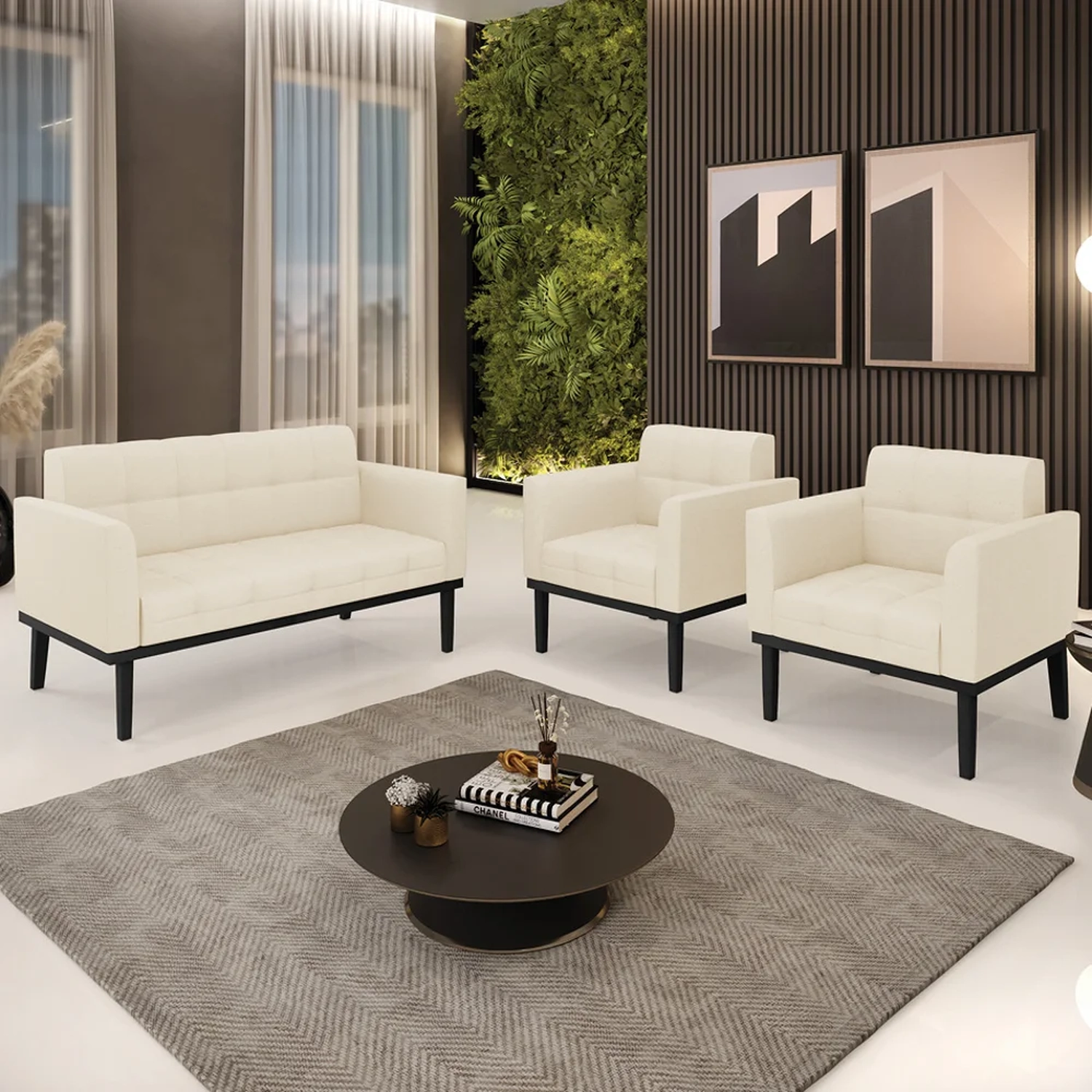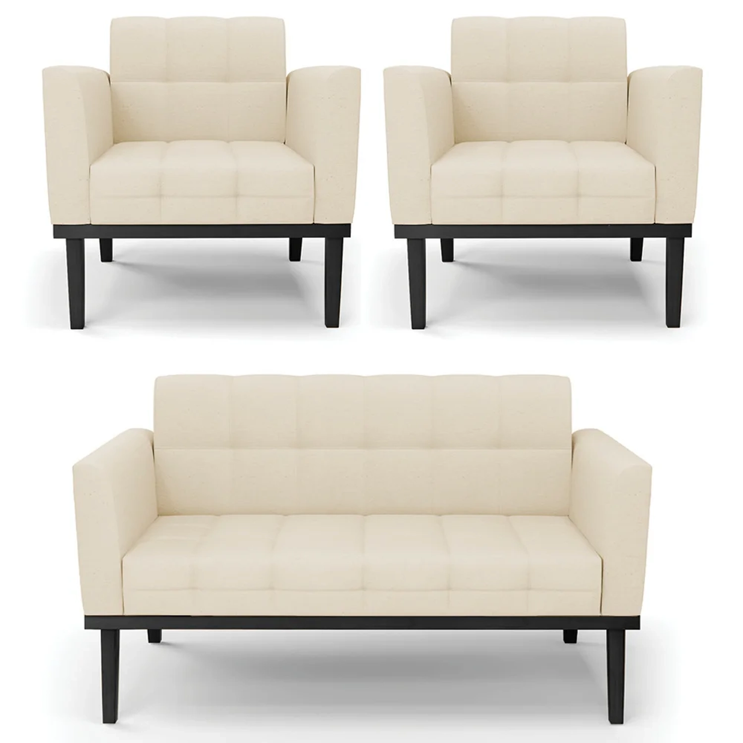 O Sofá Namoradeira e 2 Poltronas Base Madeira Preto Ana Linho Bege, da Ibiza é o conjunto ideal para quem busca beleza, conforto e versatilidade. Você pode usar na sua Sala De Estar, recepção ou qualquer outro ambiente que desejar.