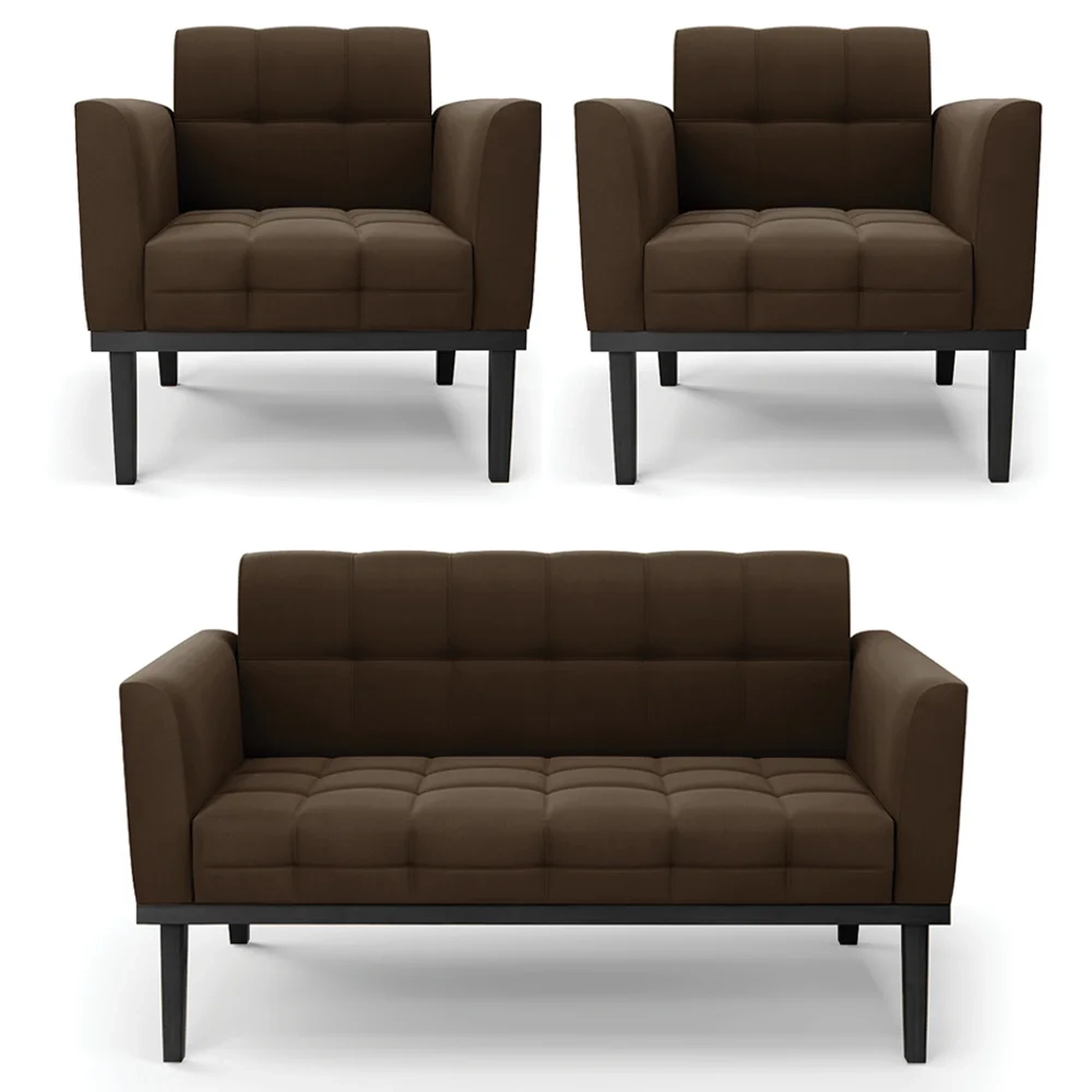 O Sofá Namoradeira e 2 Poltronas Base Madeira Preto Ana Suede Marrom, da Ibiza é o conjunto ideal para quem busca beleza, conforto e versatilidade. Você pode usar na sua Sala De Estar, recepção ou qualquer outro ambiente que desejar.