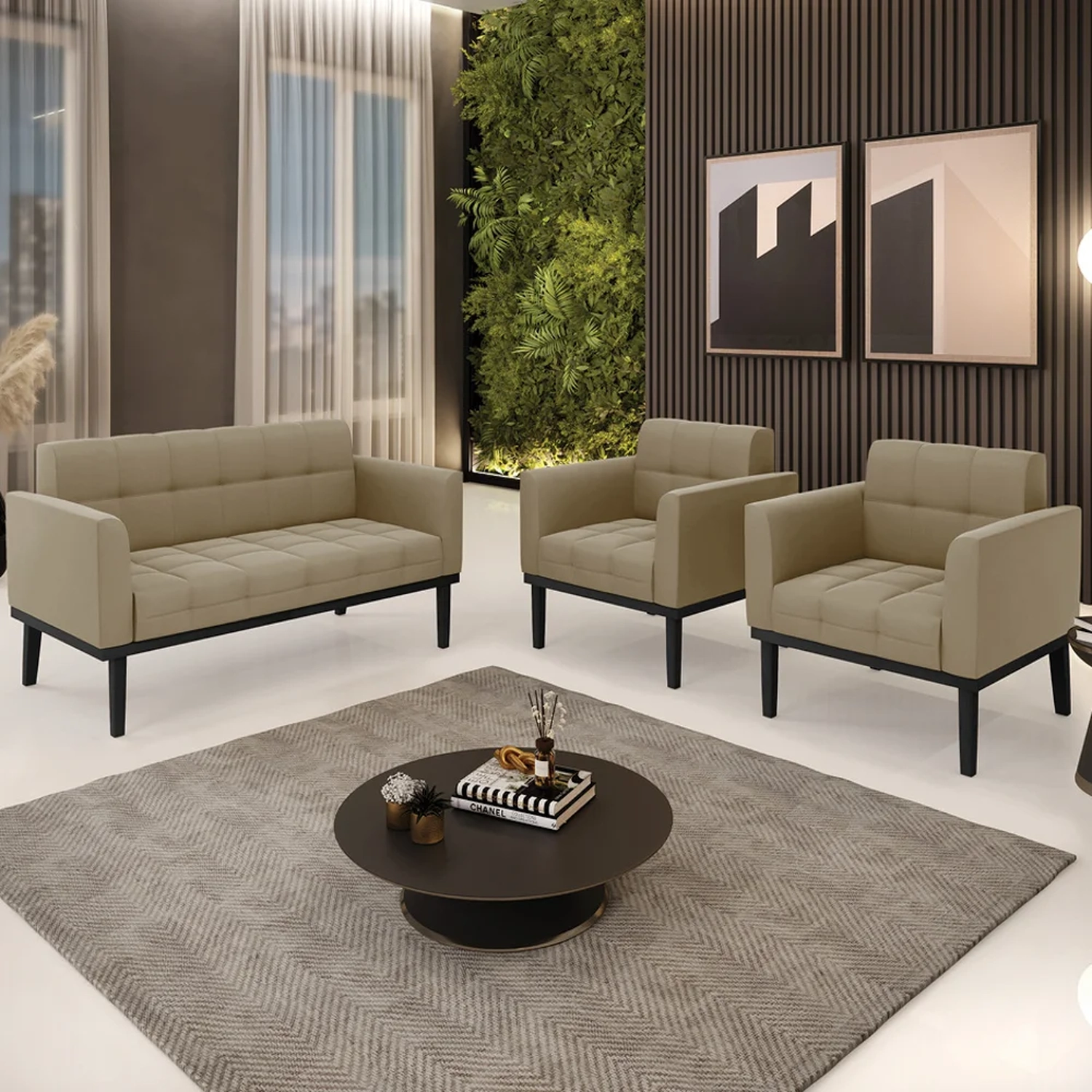 O Sofá Namoradeira e 2 Poltronas Base Madeira Preto Ana Suede Marrom RT, da Ibiza é o conjunto ideal para quem busca beleza, conforto e versatilidade. Você pode usar na sua Sala De Estar, recepção ou qualquer outro ambiente que desejar.