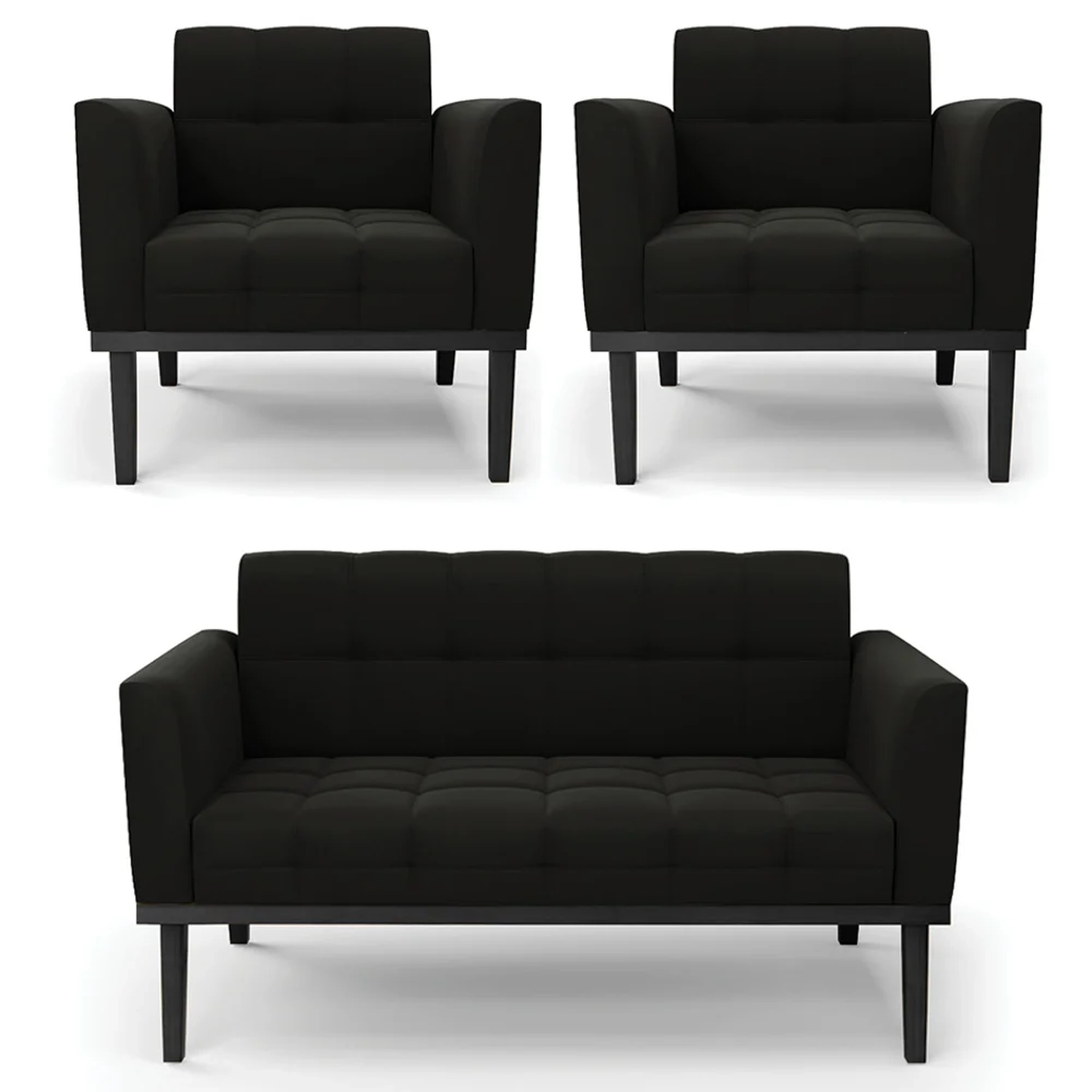O Sofá Namoradeira e 2 Poltronas Base Madeira Preto Ana Suede Preto, da Ibiza é o conjunto ideal para quem busca beleza, conforto e versatilidade. Você pode usar na sua Sala De Estar, recepção ou qualquer outro ambiente que desejar.