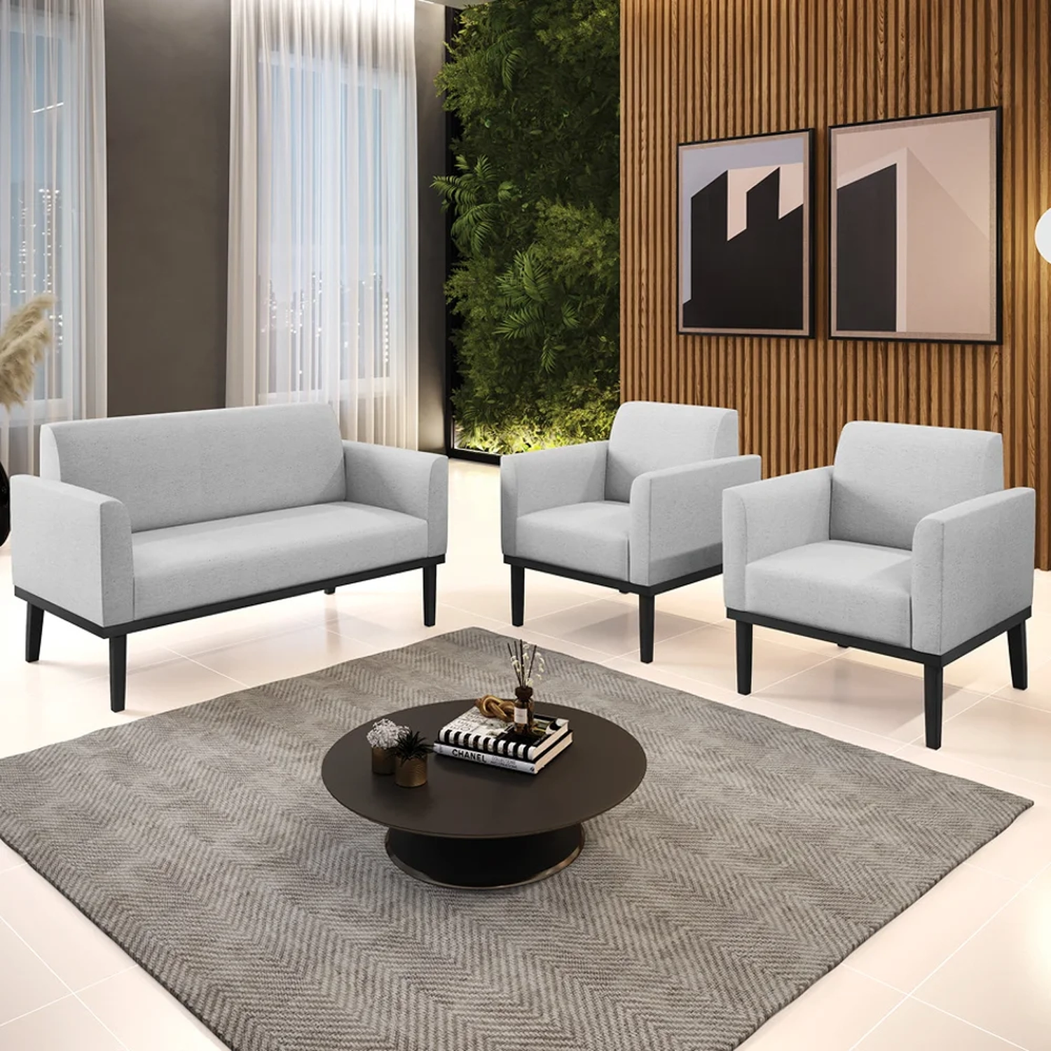 O Sofá Namoradeira e 2 Poltronas Base Madeira Preto Maressa Linho Cinza, da Ibiza é o conjunto ideal para quem busca beleza, conforto e versatilidade. Você pode usar na sua Sala De Estar, recepção ou qualquer outro ambiente que desejar.