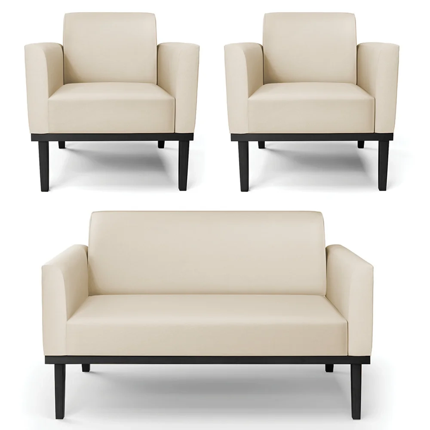 O Sofá Namoradeira e 2 Poltronas Base Madeira Preto Maressa Sintético Bege, da Ibiza é o conjunto ideal para quem busca beleza, conforto e versatilidade. Você pode usar na sua Sala De Estar, recepção ou qualquer outro ambiente que desejar.